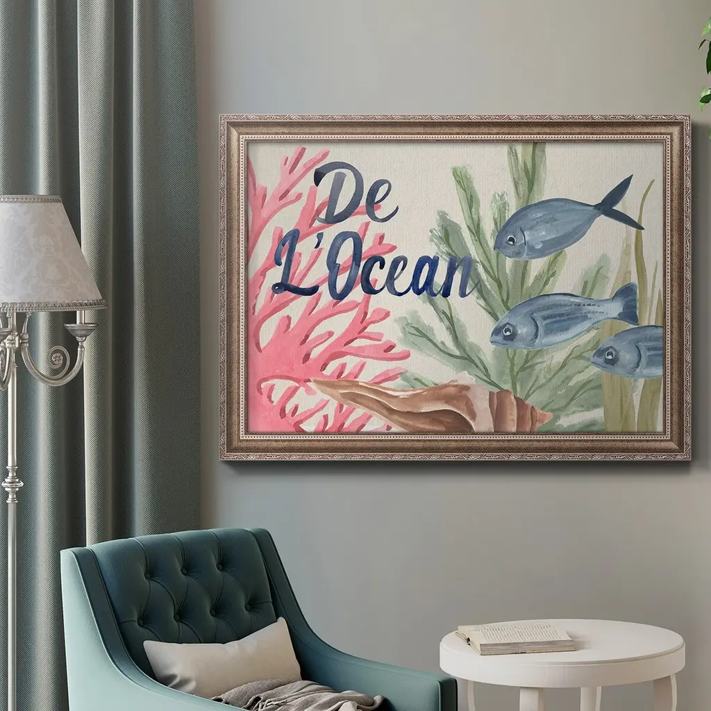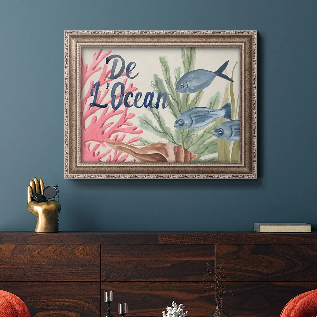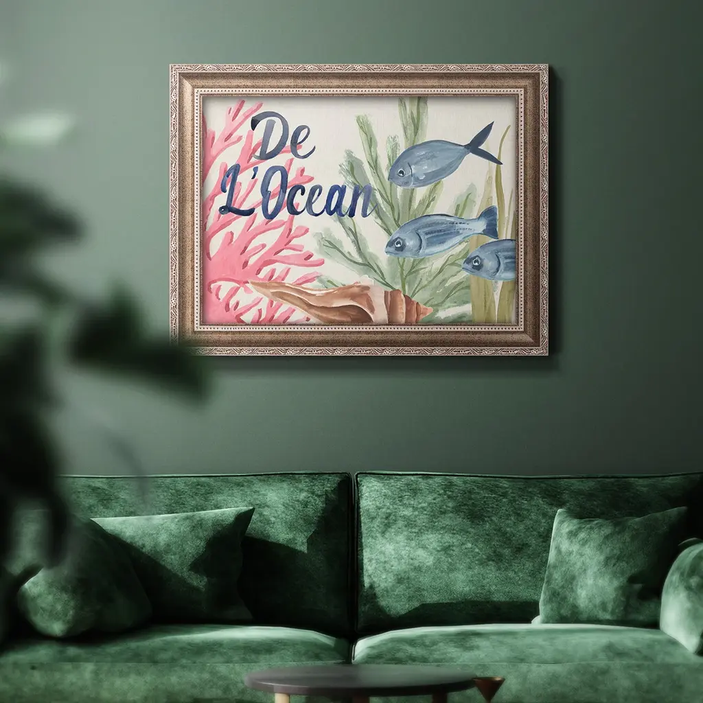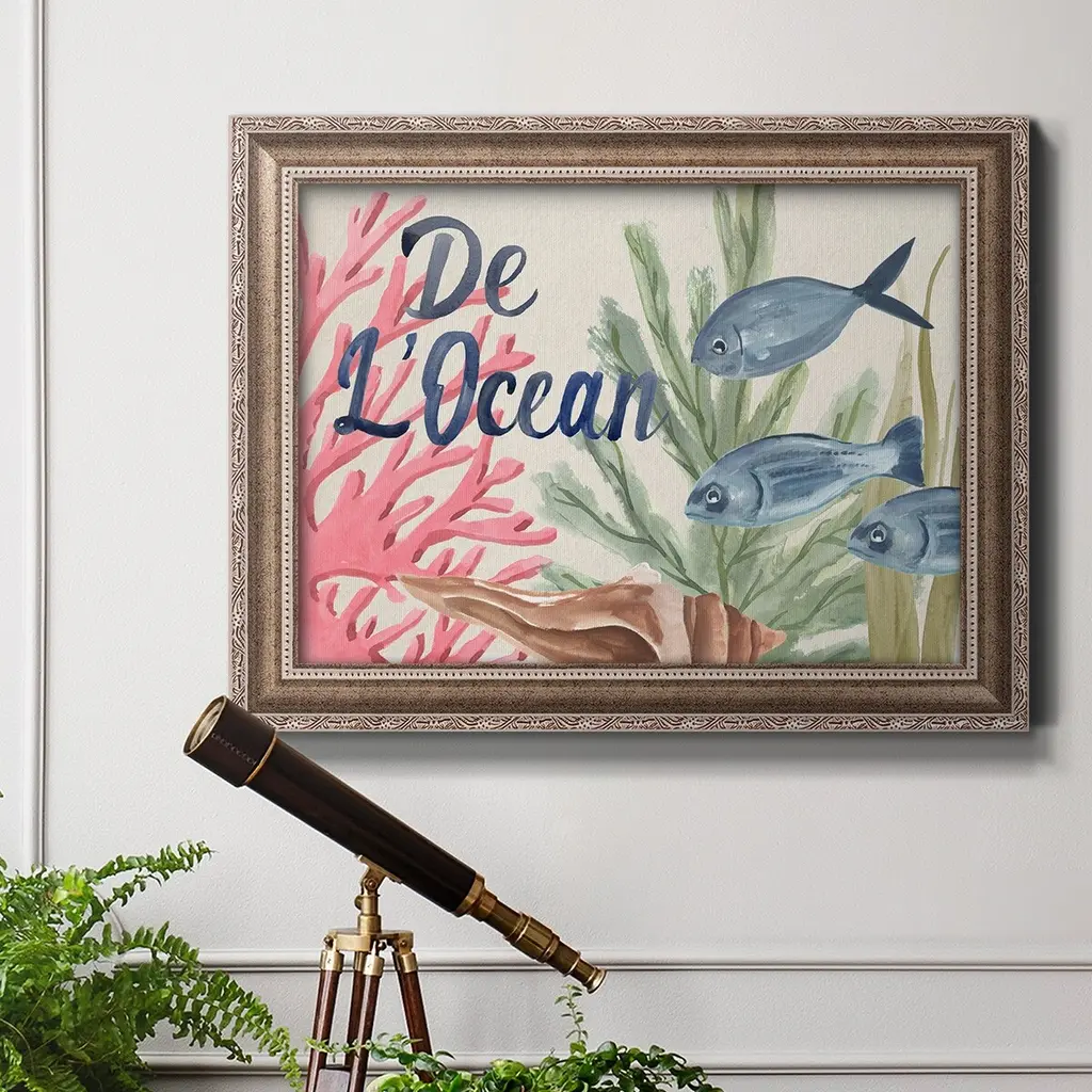 Pastel Mer IV Premium Framed Canvas- Ready to Hang A Premium Framed Canvas created to last. Framed in distressed wood and available in an array of sizes and colors Featuring a beveled a solid wood stretcher bar, each piece comes ready to hand 3 SIZES AVAILABLE 16''X20'' - Overall Size 18'X27'' - Overall Size 24''x36'' - Overall Size Each piece is made to order. Each piece comes with hanging hardware. Made in the USA Ready to Hang Giclee Paper Print Acrylic Glass Beveled Matt Board
