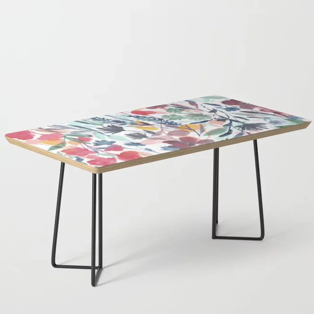 Pastel Pink Abstract Leaf Pattern Coffee Table