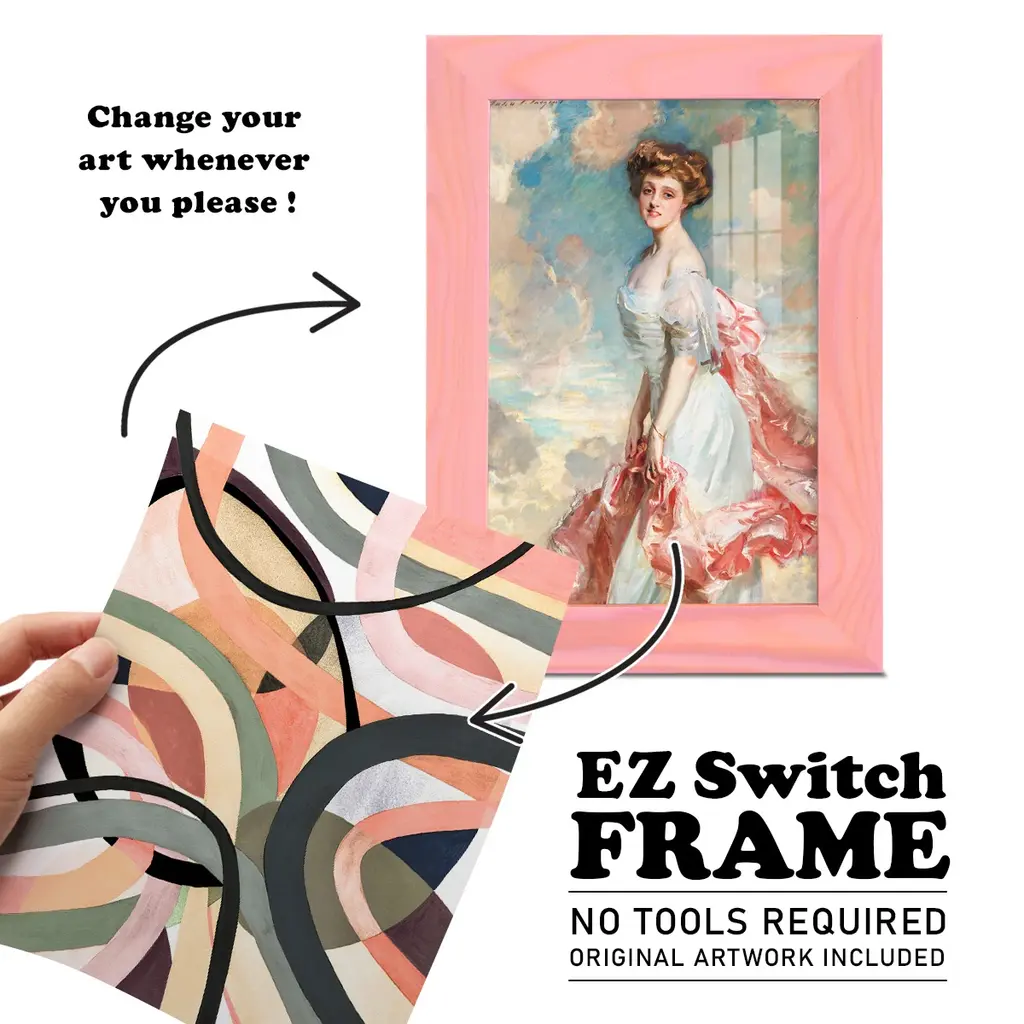 Pastel Tangle II -EZ SWITCH Framed Print w/glass-Cherry Red A delightful, framed print. Featuring a solid wood frame with real wood glass. This premium print is giclee quality. In addition, every frame features a removable back and table top stand. This allows you to change your art in the future or to just stand the art on a table for a new look. We are sure you'll enjoy our new series of EZ SWITCH Framed Art. Solid Wood Frame Real Glass Removable / Replaceable Art Built in Tabletop Stand Sizes range from 4x6 up to 12x15 - buy just one or pair them up as sets as you see fit.