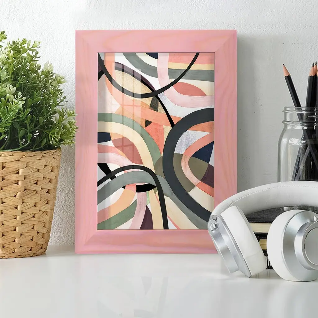Pastel Tangle II -EZ SWITCH Framed Print w/glass-Cherry Red A delightful, framed print. Featuring a solid wood frame with real wood glass. This premium print is giclee quality. In addition, every frame features a removable back and table top stand. This allows you to change your art in the future or to just stand the art on a table for a new look. We are sure you'll enjoy our new series of EZ SWITCH Framed Art. Solid Wood Frame Real Glass Removable / Replaceable Art Built in Tabletop Stand Sizes range from 4x6 up to 12x15 - buy just one or pair them up as sets as you see fit.