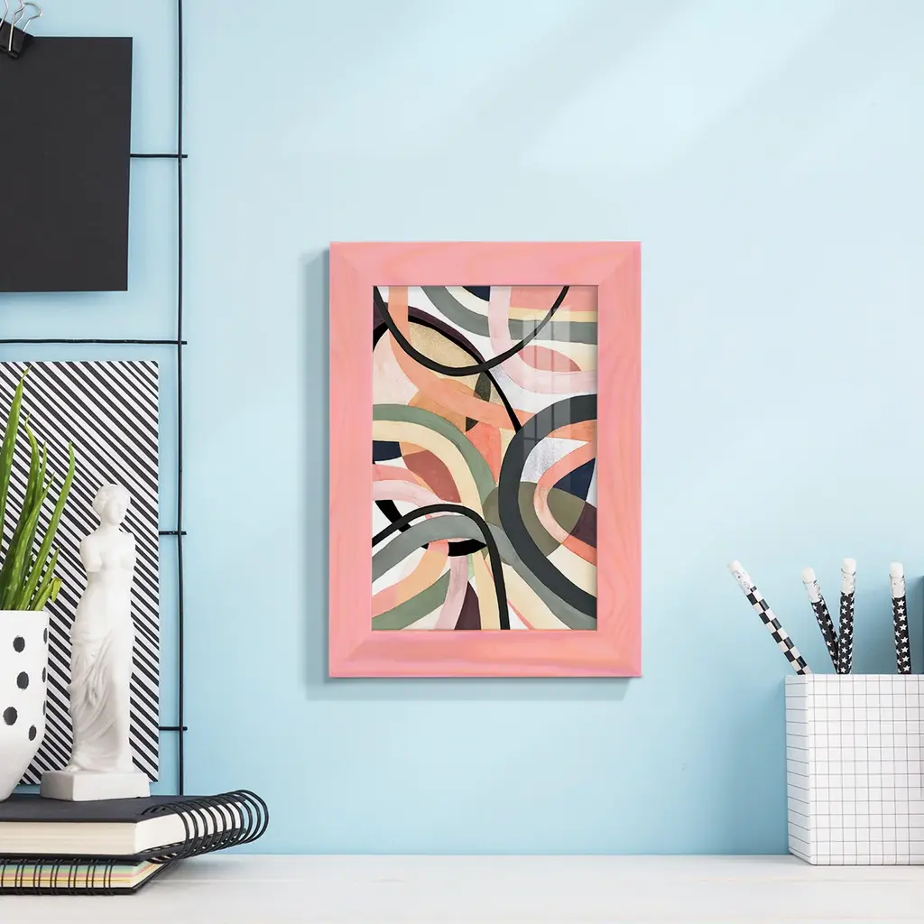 Pastel Tangle II -EZ SWITCH Framed Print w/glass-Cherry Red A delightful, framed print. Featuring a solid wood frame with real wood glass. This premium print is giclee quality. In addition, every frame features a removable back and table top stand. This allows you to change your art in the future or to just stand the art on a table for a new look. We are sure you'll enjoy our new series of EZ SWITCH Framed Art. Solid Wood Frame Real Glass Removable / Replaceable Art Built in Tabletop Stand Sizes range from 4x6 up to 12x15 - buy just one or pair them up as sets as you see fit.