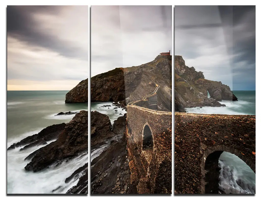 "Path To Cape And Chapel In Spain" Photo Metal Wall Art, 3 Panels, 36"x28"