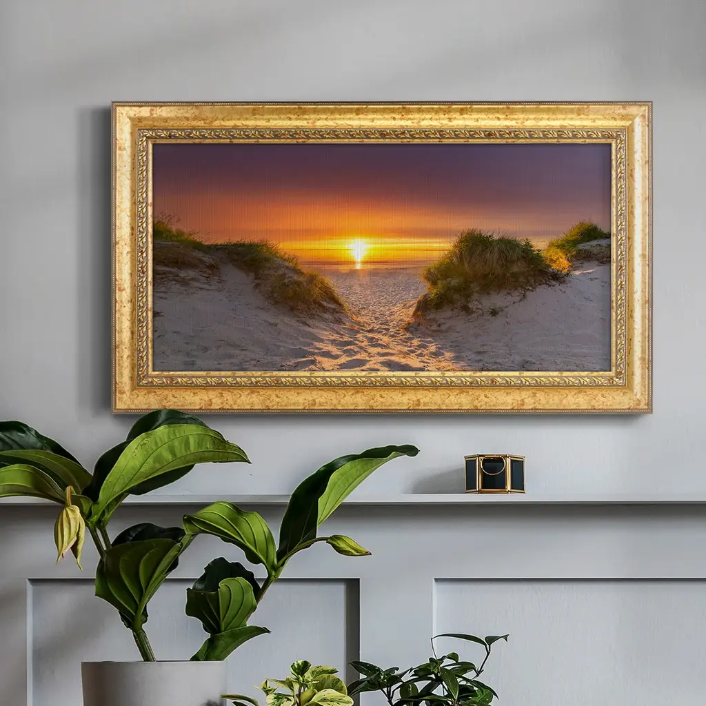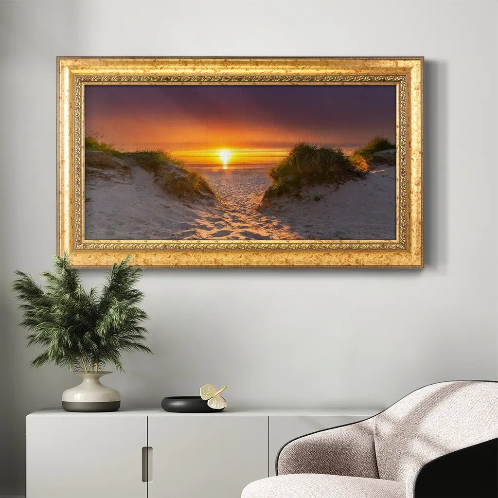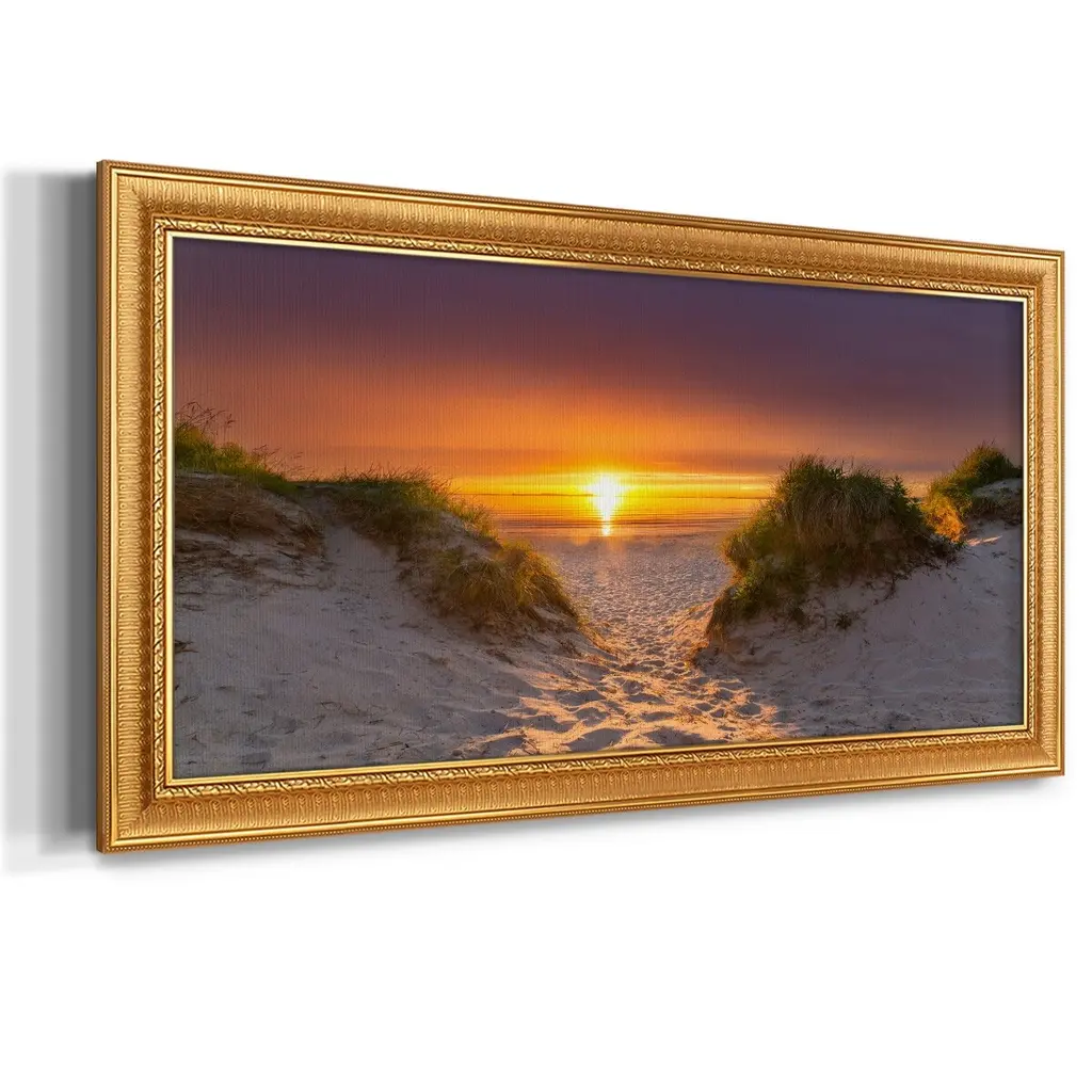 Path to Happiness Premium Framed Canvas- Ready to Hang A Premium Framed Canvas created to last. Framed in distressed wood and available in an array of sizes and colors Featuring a beveled a solid wood stretcher bar, each piece comes ready to hand 3 SIZES AVAILABLE 21''X37'' - Overall Size 25''X45'' - Overall Size 29''x53'' - Overall Size Each piece is made to order. Each piece comes with hanging hardware. Made in the USA Ready to Hang Giclee Paper Print Acrylic Glass Beveled Matt Board