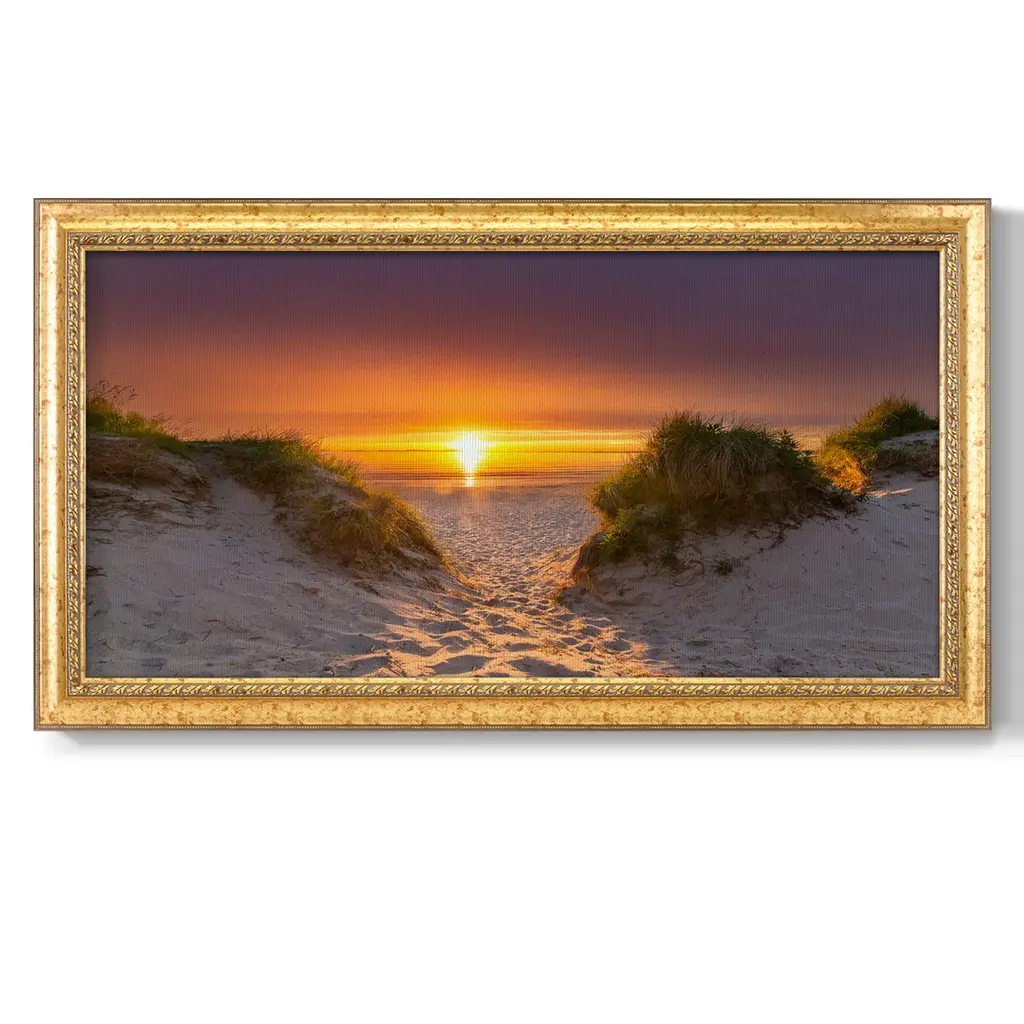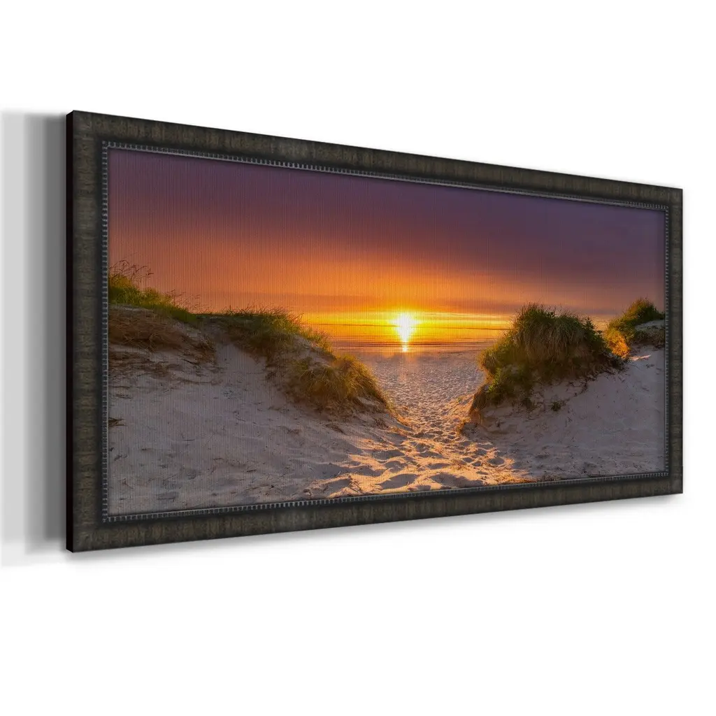 Path to Happiness Premium Framed Canvas- Ready to Hang A Premium Framed Canvas created to last. Framed in distressed wood and available in an array of sizes and colors Featuring a beveled a solid wood stretcher bar, each piece comes ready to hand 3 SIZES AVAILABLE 21''X37'' - Overall Size 25''X45'' - Overall Size 29''x53'' - Overall Size Each piece is made to order. Each piece comes with hanging hardware. Made in the USA Ready to Hang Giclee Paper Print Acrylic Glass Beveled Matt Board