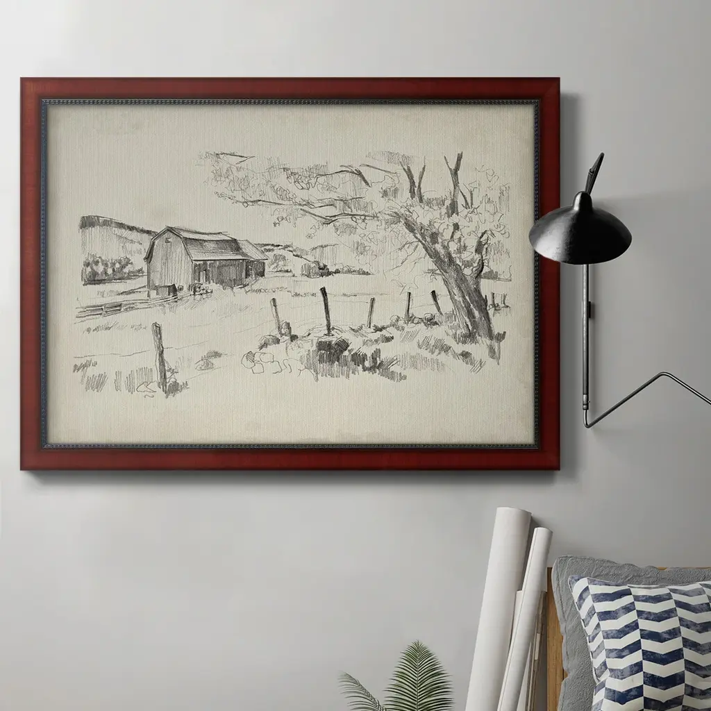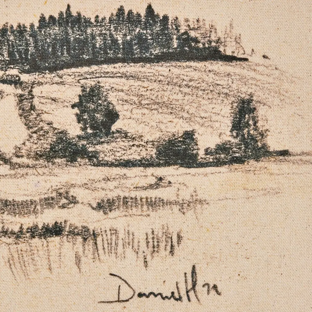 Artist Dan Hobday finds inspiration in the coastal landscapes of his hometown of Devon, England, crafting this hand-drawn, sketched-style nature vignette. Finished within a decorative frame of naturally distressed painted pine. Handmade in Austin, Texas.