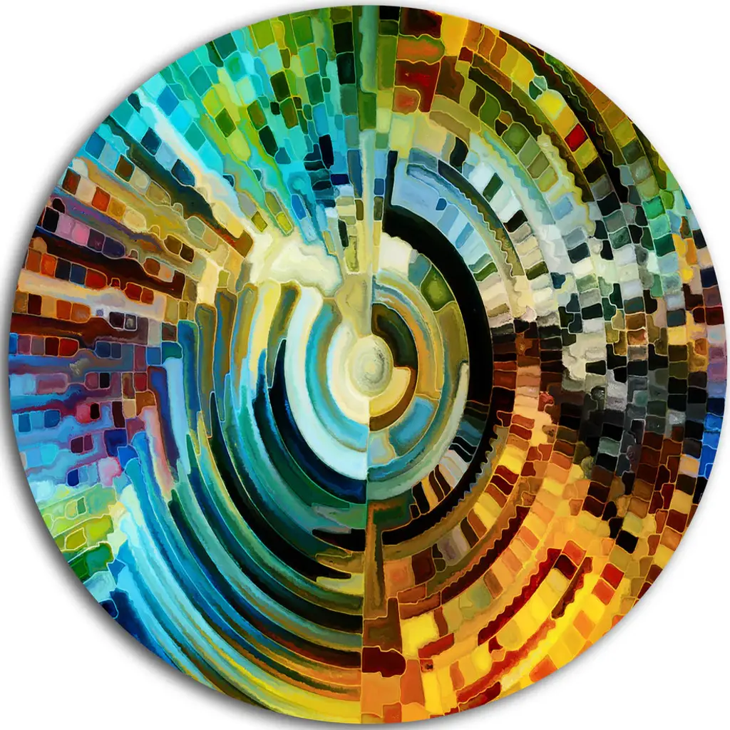 Bring contemporary abstraction to your home with this large 36W x 28H Metal Wall Art. This Paths of Stained Glass Metal Artwork makes it the focal point of any room or office. - White gloss coating ensures colors are extra vibrant with light reflection.- Aluminum grade sheet metal with 1 inch mounting frame on the back giving the illusion that the artwork is floating on the wall..- Mounting brackets are included along with instructions.- High quality digital images are created directly into a glossy aluminum panel producing a stunning and captivating print into the glossy finish of the metal.- Water, fire and scratch resistant HD aluminum panels.- Looks better than any photo paper and guaranteed to last at least 20 years- Easy to clean with a microfiber cloth. Colors are far superior to regular canvas art. - Easy to hang