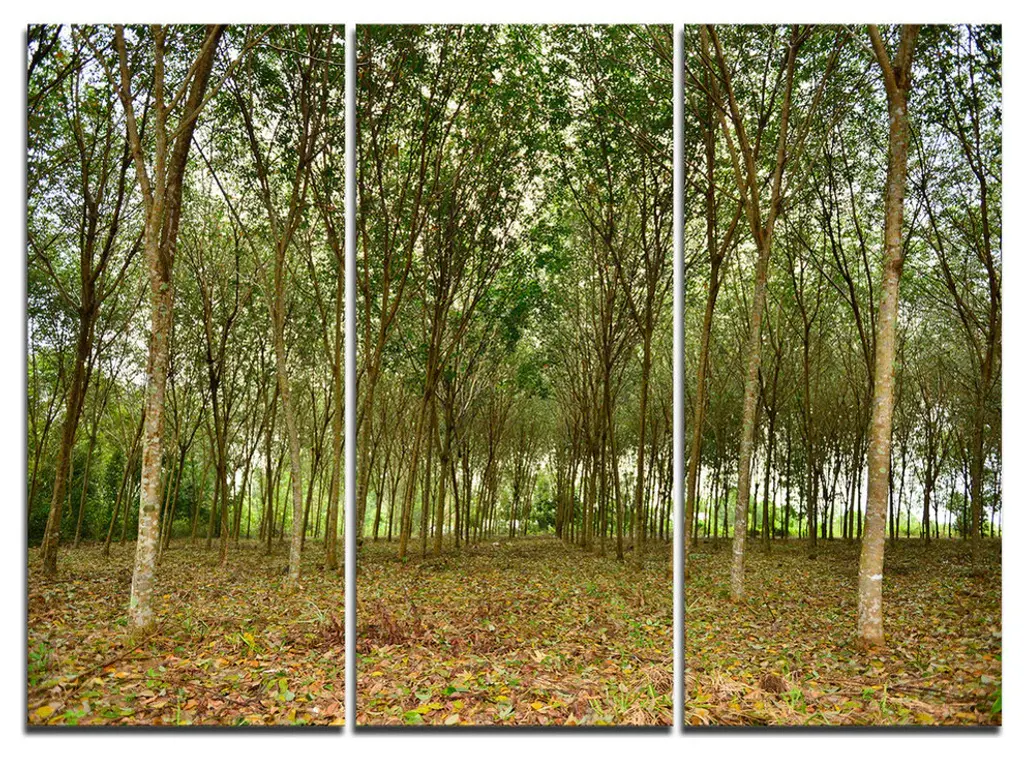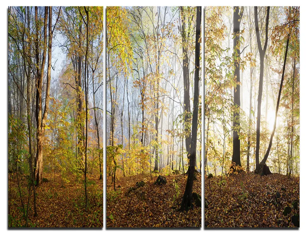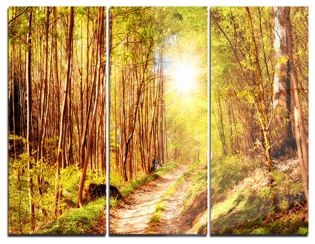 "Pathway Through Fall Green Trees" Photo Metal Wall Art, 3 Panels, 36"x28"