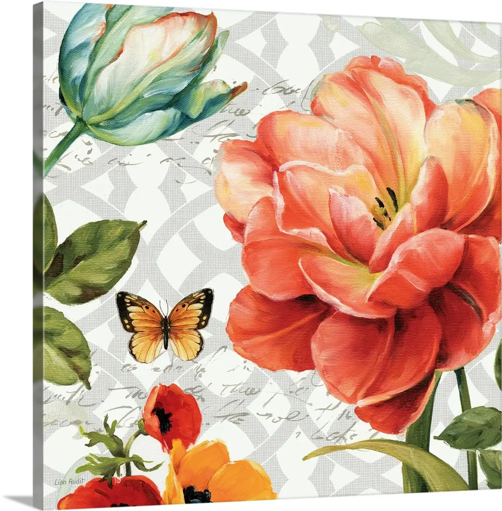 Belles Fleurs a Paris II by Patricia Pinto is a high quality piece of canvas artwork. The finished size of this piece is 12" X 12", and it has a depth 1.5" with navyblue painted sides. There is a UV protective coating over the entire image, and it is ready to hang on your wall with no hardware required. 100% Satisfaction Guaranteed.