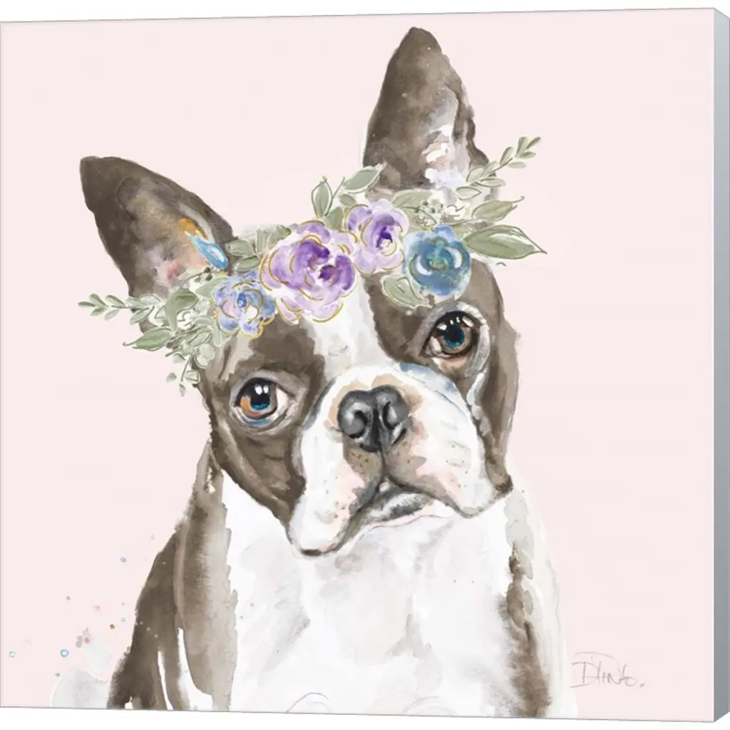 Flower Crown Pet III by Patricia Pinto is a high quality piece of canvas artwork. The finished size of this piece is 12" X 12", and it has a depth 1.5" with winter gray painted sides. There is a UV protective coating over the entire image, and it is ready to hang on your wall with no hardware required. 100% Satisfaction Guaranteed.