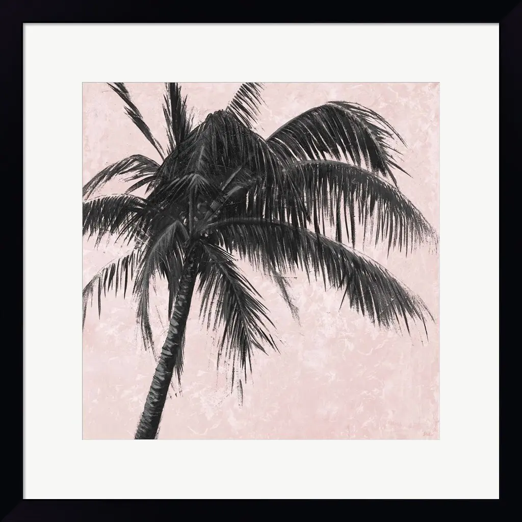 Gray Palm on Pink I by Patricia Pinto is a high quality piece of framed artwork. The finished size of this piece is 17" x 17". It has a Petite Black with Flat Front frame, White mat and is finished with high quality Acrylic Plexiglass. 100% Satisfaction Guaranteed.