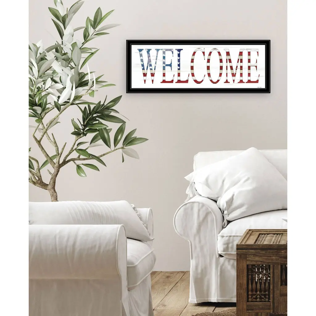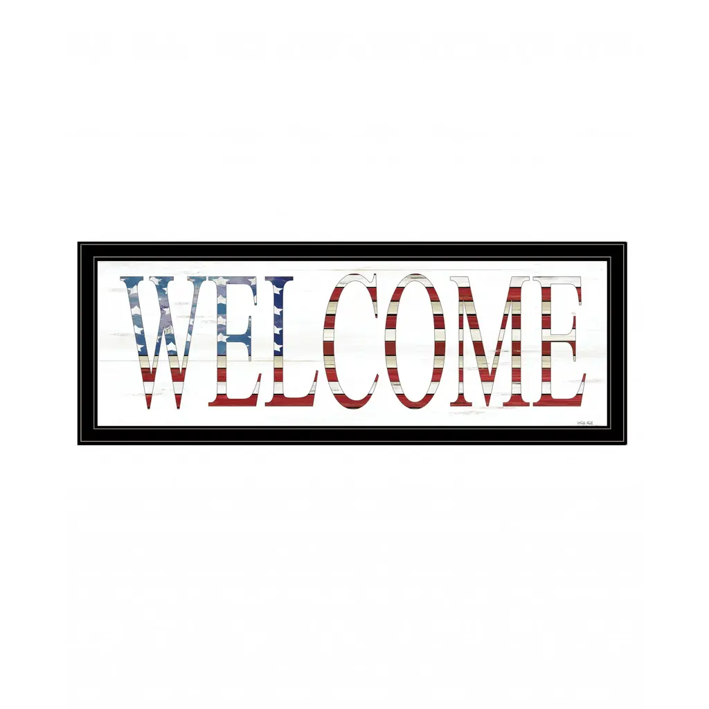 Unique and decorative, this patriotic welcome 2 black framed print wall art will leave a lasting impression. This print is a visual artistic expression that allows you to decorate your space in style. Reproduced for you on wood, this hanging decorative accent will be a trendy and fashionable way to dress your walls in a rustic and modern farmhouse vibe. Hang on your wall to add some up to date fashion and decoration. Utilize this opportunity to create a focal point in the room with this fabulous wall decor option. 15" H x 39" W x 1" D