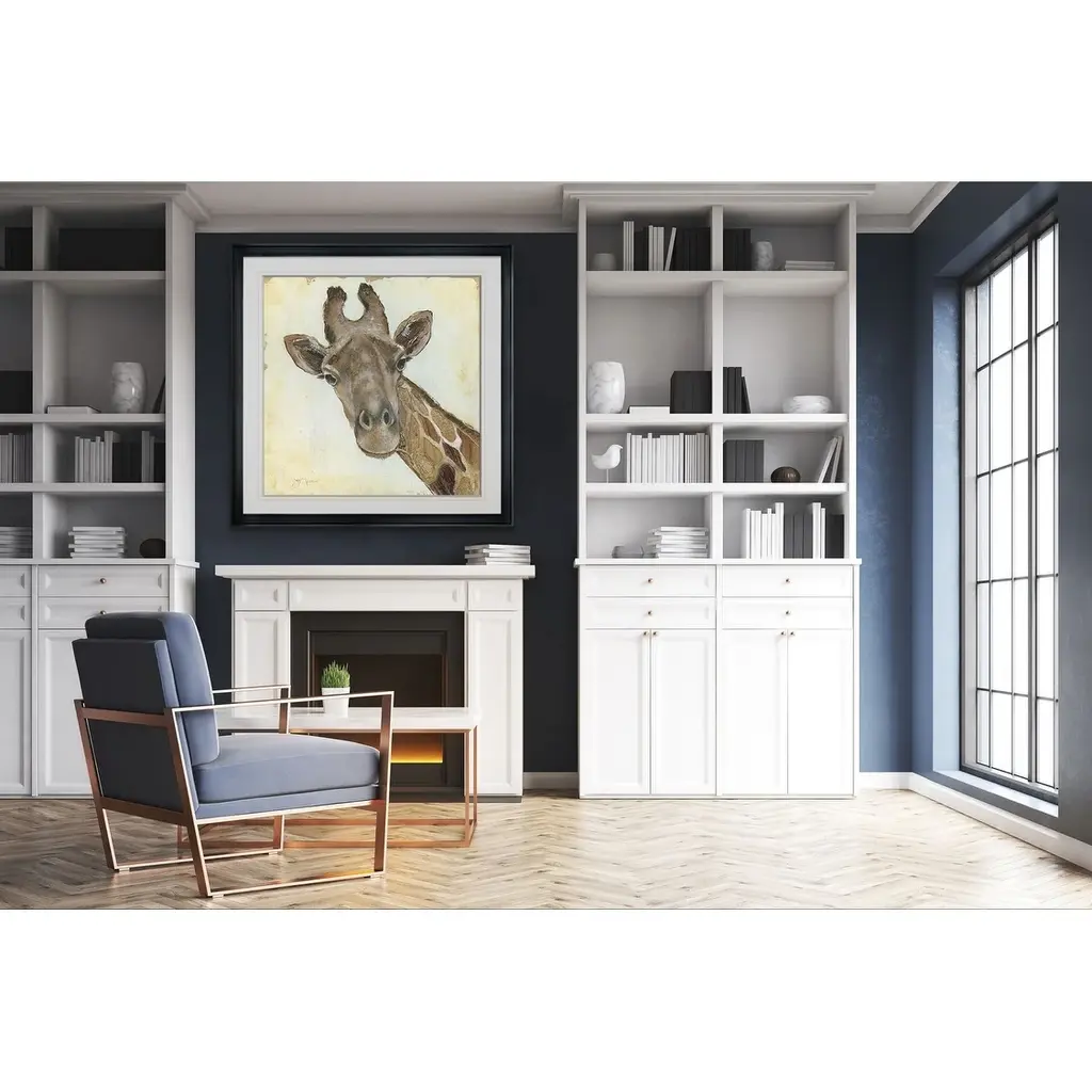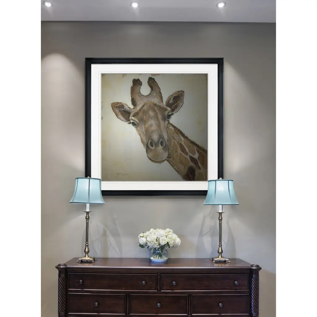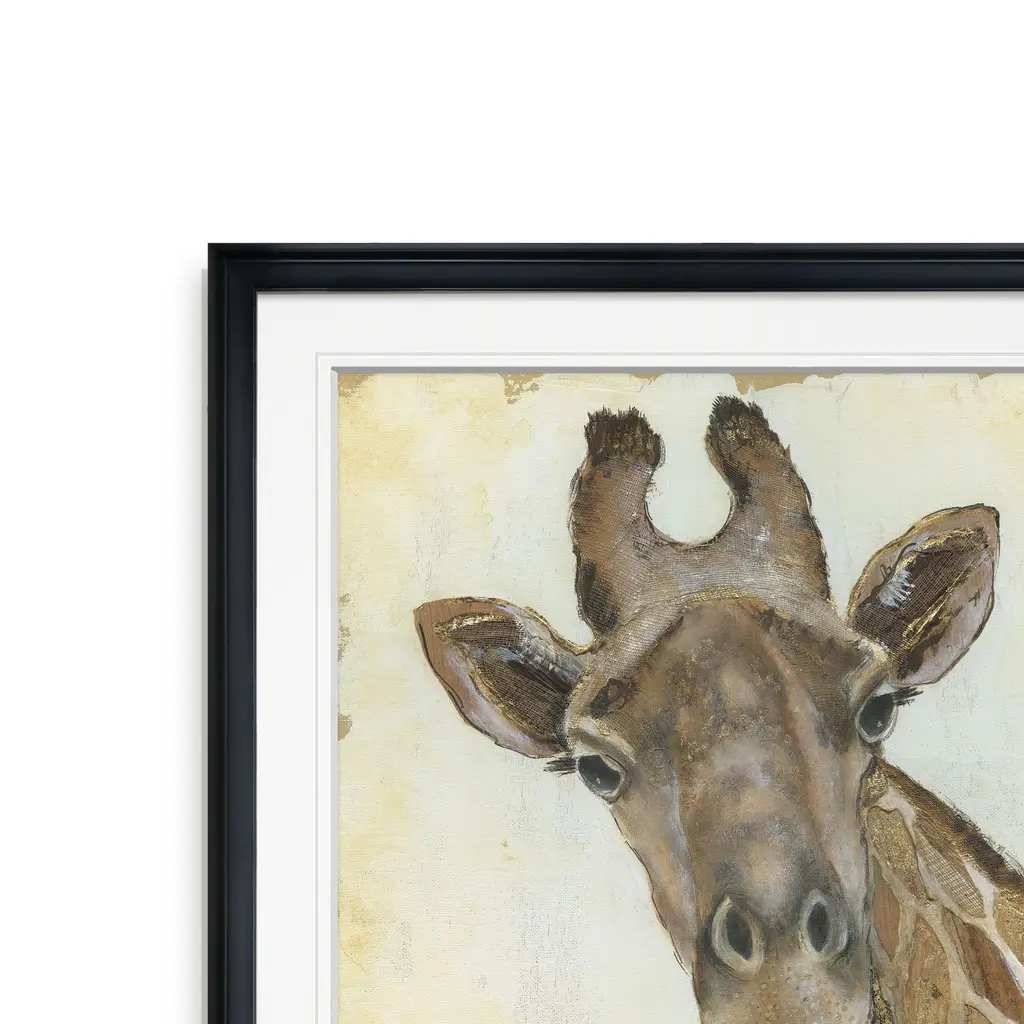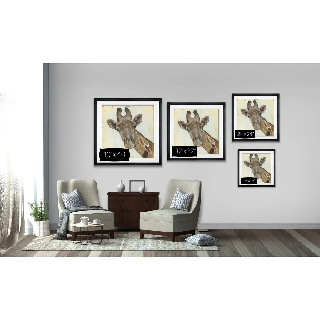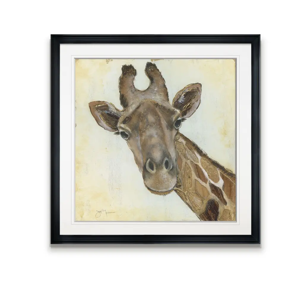 Patterned Giraffe -Framed Giclee Print A premium framed giclee print Printed using the last archival inks. Each print is carefully printed and framed by hand. Each piece features a 2'' Beveled matt board, acrylic glass and comes ready to hand. 4 SIZES AVILABLE 16''x16''- Overall Size 24''x22''- Overall Size 28''x28''' - Overall Size 32''x32''' - Overall Size 38''x38'' - Overall Size ** Overall size may vary slightly from piece to piece Each piece is made to order. Built to Last Each piece comes ready to hang Archival Ink 2'' Matt Board Assembled by hand in the America