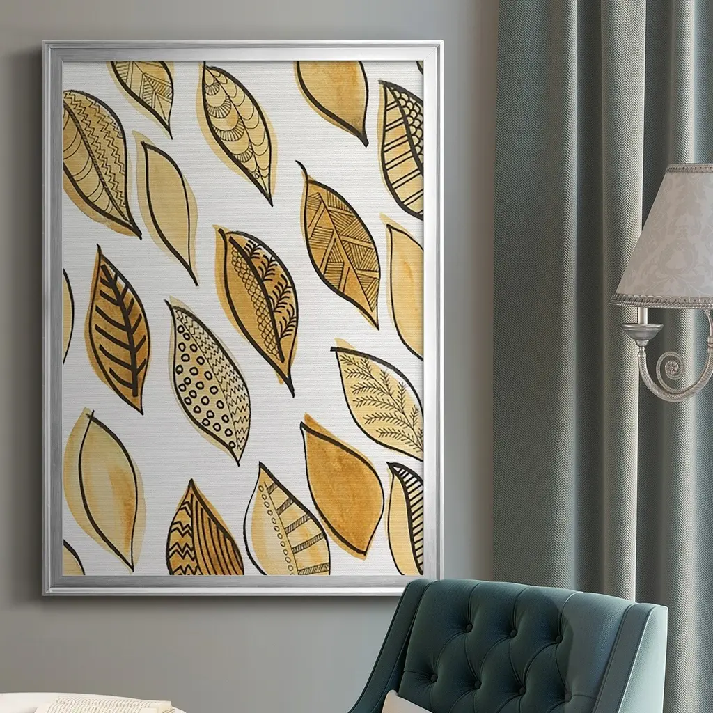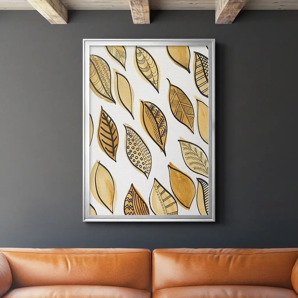 Patterned Leaf Shapes II Premium Framed Print - Ready to Hang A Premium Framed Print created to last. Framed in distressed wood and available in an array of sizes and colors Featuring a beveled a solid wood stretcher bar, each piece comes ready to hand 4 SIZES AVAILABLE 30.5''X42.5'' - Overall Size 26.5'X36.5'' - Overall Size 22.5''x30.5'' - Overall Size 18.5''x24.5'' - Overall Size Each piece is made to order. Each piece comes with hanging hardware. Made in the USA Ready to Hang