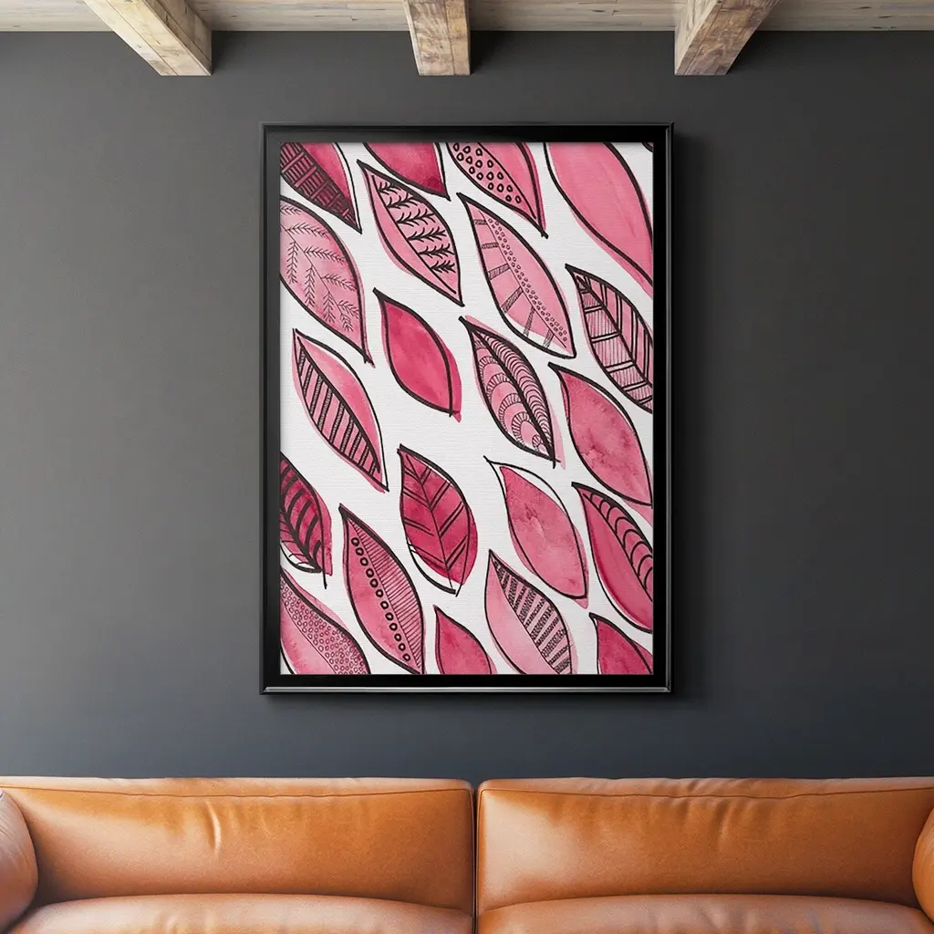 Patterned Leaf Shapes III Premium Framed Print - Ready to Hang A Premium Framed Print created to last. Framed in distressed wood and available in an array of sizes and colors Featuring a beveled a solid wood stretcher bar, each piece comes ready to hand 4 SIZES AVAILABLE 30.5''X42.5'' - Overall Size 26.5'X36.5'' - Overall Size 22.5''x30.5'' - Overall Size 18.5''x24.5'' - Overall Size Each piece is made to order. Each piece comes with hanging hardware. Made in the USA Ready to Hang