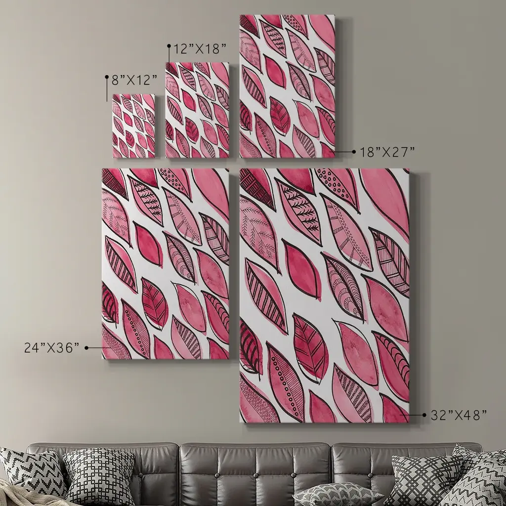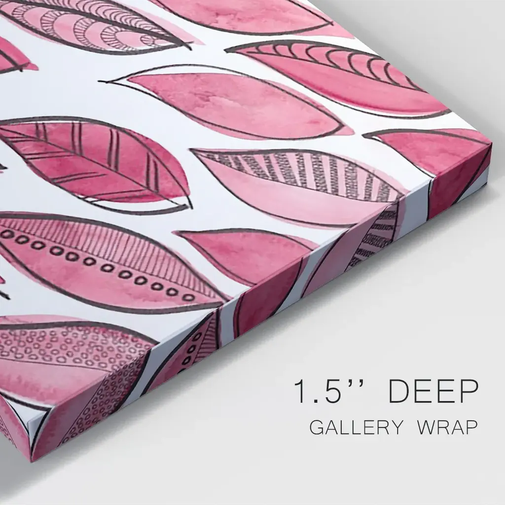 Patterned Leaf Shapes III Premium Gallery Wrapped Canvas - Ready to Hang A premium hand stretched gallery wrapped canvas print created to last. Featuring a beveled a solid wood stretcher bar, each piece comes ready to hand 6 SIZES AVAILABLE 8''X12'' - Overall Size 12''X18'' - Overall Size 18''X27'' - Overall Size 24''x36'' - Overall Size 32''x48'' - Overall Size 40''x60'' - Overall Size Each piece is made to order. Built to Last Each piece comes ready to hang Solid wood stretcher Fade and Water resistant Made domestically