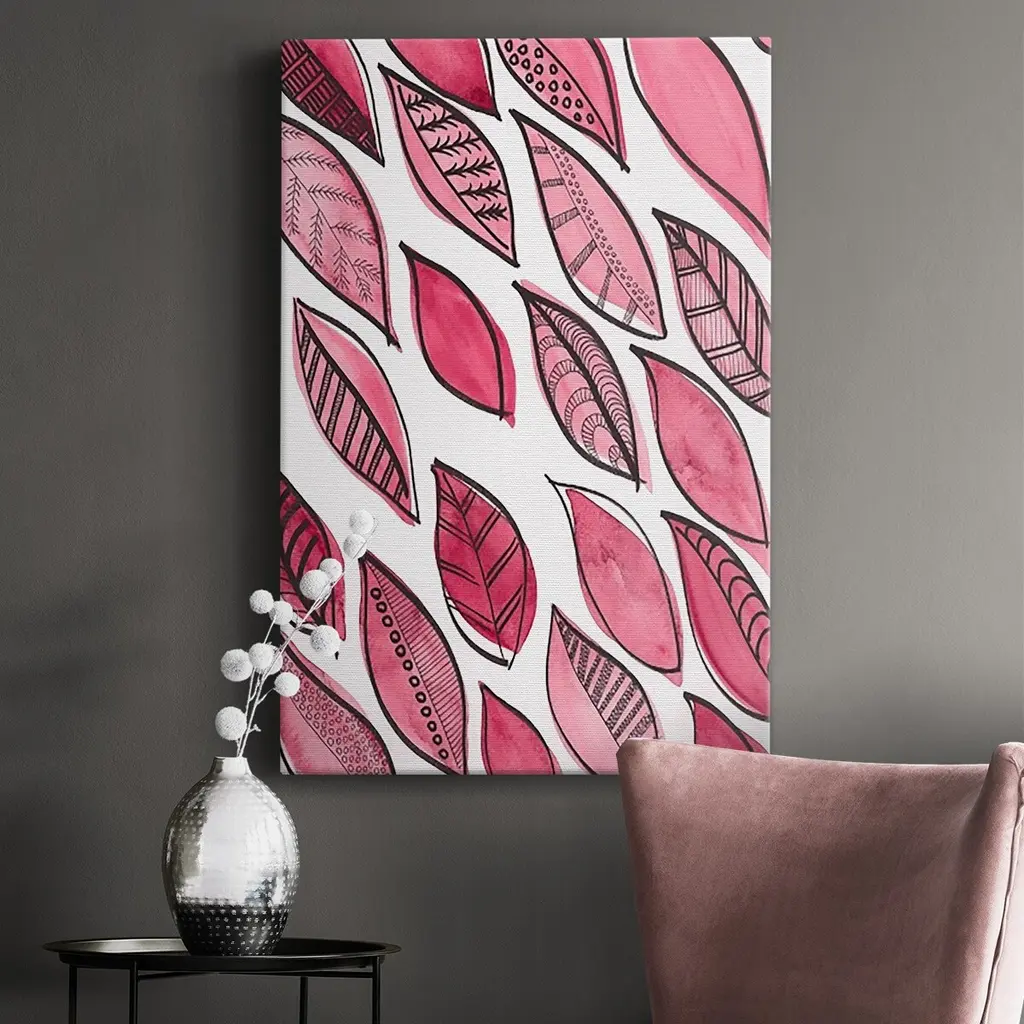 Patterned Leaf Shapes III Premium Gallery Wrapped Canvas - Ready to Hang A premium hand stretched gallery wrapped canvas print created to last. Featuring a beveled a solid wood stretcher bar, each piece comes ready to hand 6 SIZES AVAILABLE 8''X12'' - Overall Size 12''X18'' - Overall Size 18''X27'' - Overall Size 24''x36'' - Overall Size 32''x48'' - Overall Size 40''x60'' - Overall Size Each piece is made to order. Built to Last Each piece comes ready to hang Solid wood stretcher Fade and Water resistant Made domestically