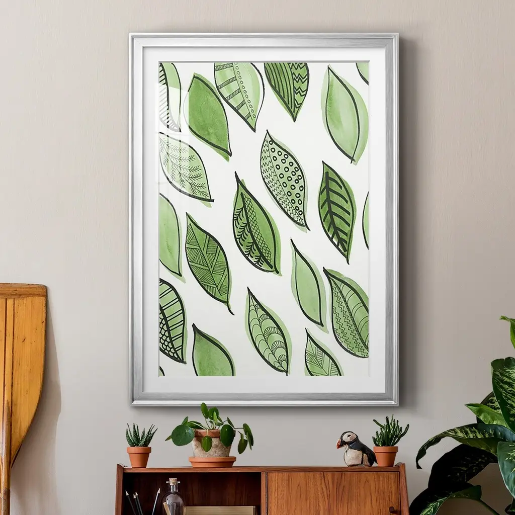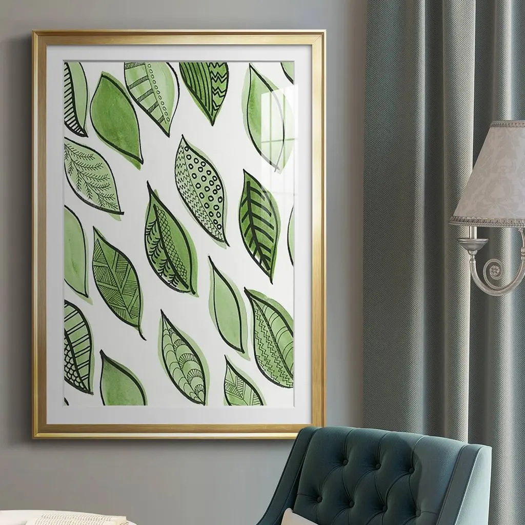 Patterned Leaf Shapes IV Premium Framed Print - Ready to Hang A Premium Framed Print created to last. Framed in distressed wood and available in an array of sizes and colors Featuring a beveled a solid wood stretcher bar, each piece comes ready to hand 4 SIZES AVAILABLE 30.5''X42.5'' - Overall Size 26.5'X36.5'' - Overall Size 22.5''x30.5'' - Overall Size 18.5''x24.5'' - Overall Size Each piece is made to order. Each piece comes with hanging hardware. Made in the USA Ready to Hang Giclee Paper Print Acrylic Glass Beveled Matt Board