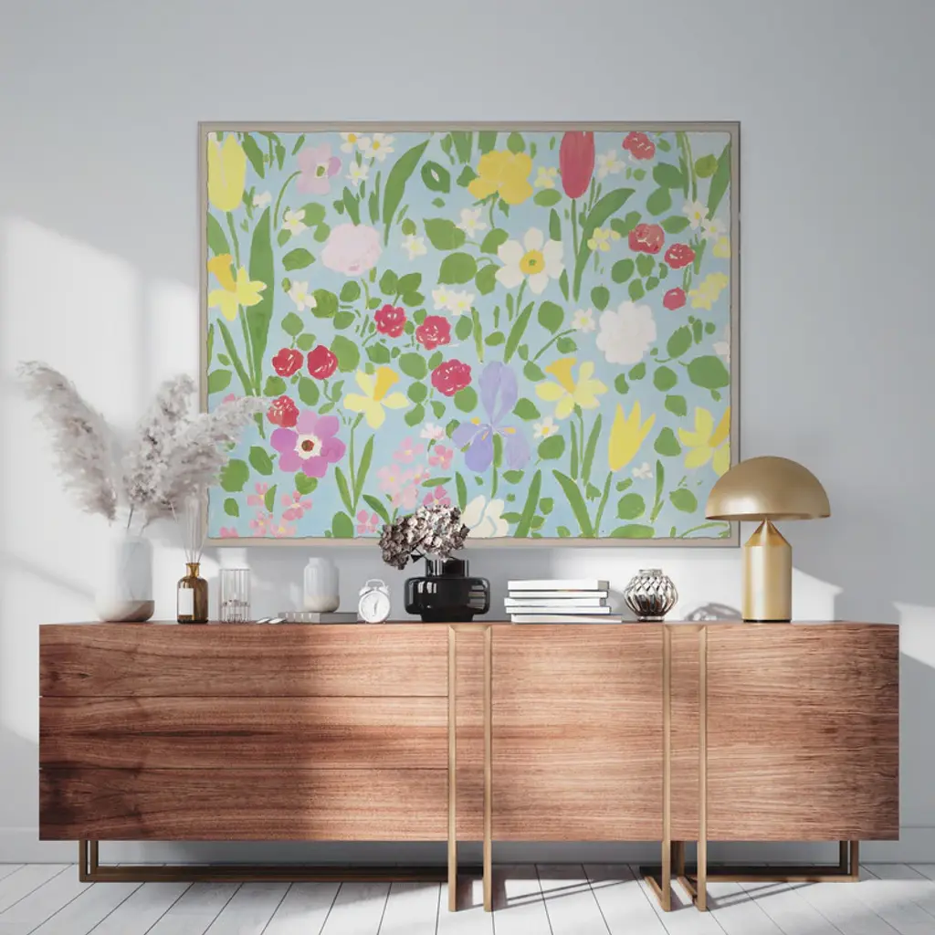The Paule Marrot 'Daffodils' art from was sourced from the beautiful textile archives of French engraver, painter, and textile artist Paule Marrot. Her bold use of flowers, color and patterns reflect a compositionally modernist style classically associated with the Art Deco movement.