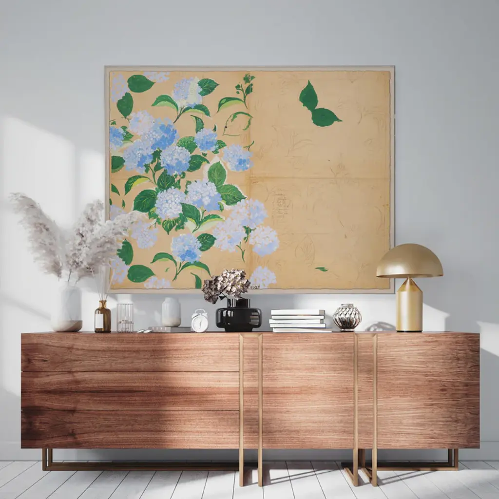 The 'Viva' print is sourced from the beautiful textile archives of French engraver, painter, and textile artist Paule Marrot. Her bold use of flowers, color and patterns reflect a compositionally modernist style classically associated with the Art Deco movement. Each work of art is hand-curated and framed in a variety of choices to suit your needs. Framed in an Acrylic box, wood frame options in gold, black, silver, or white as well as available in PRINT ONLY form on museum quality paper. Overall Dimensions Delivery Shipping