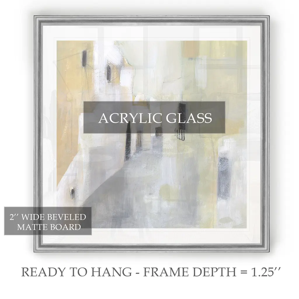 Pausa I -Black Framed Print A premium Black Framed giclee print Featuring a beveled a matt , acrylic glass, and a high quality giclee print 5 SIZES AVAILABLE 34''x34''- Overall Size 30''x30'' - Overall Size 26''x26''' - Overall Size 22''x22''' - Overall Size 18''x18''' - Overall Size Each piece is made to order. Built to Last Each piece comes ready to hang Fade and Water resistant Made domestically