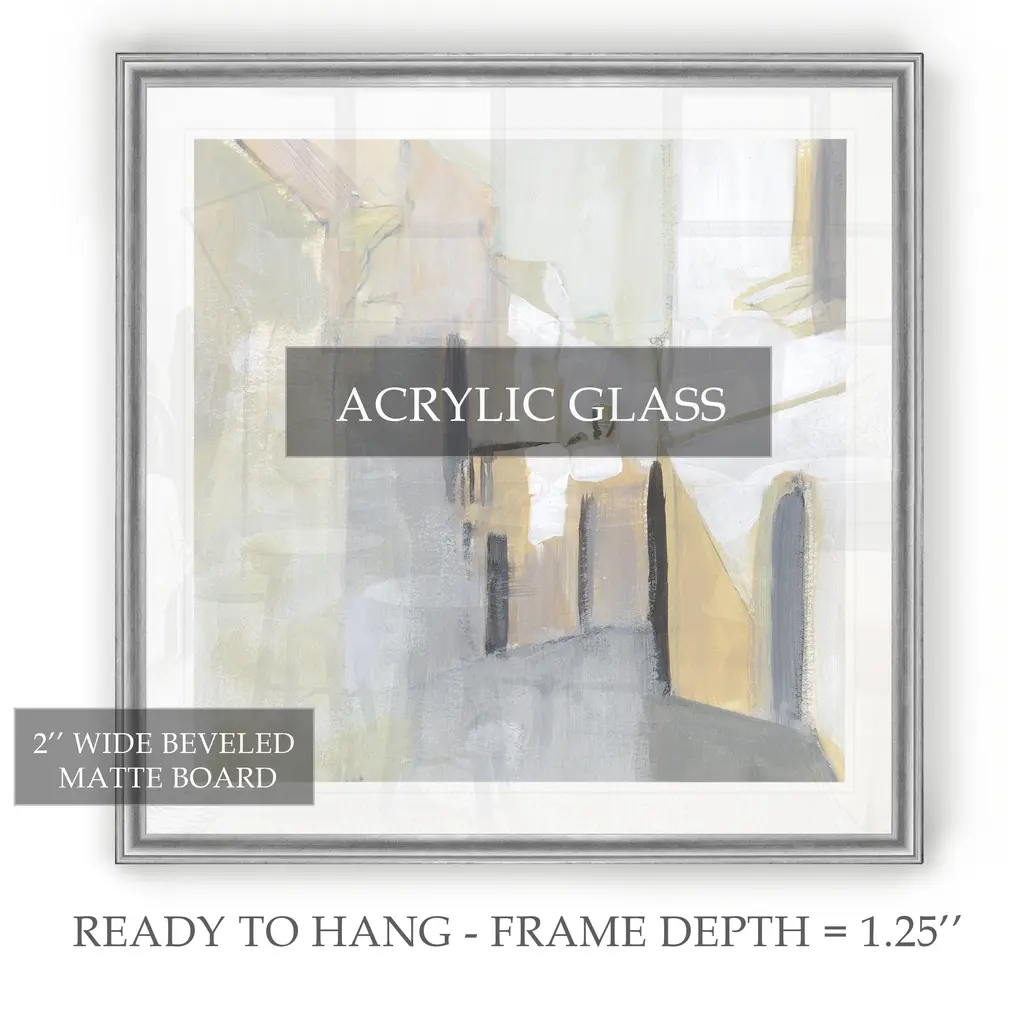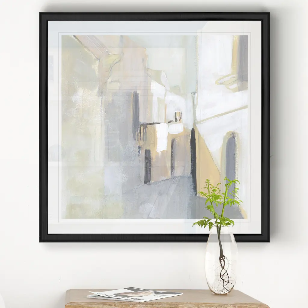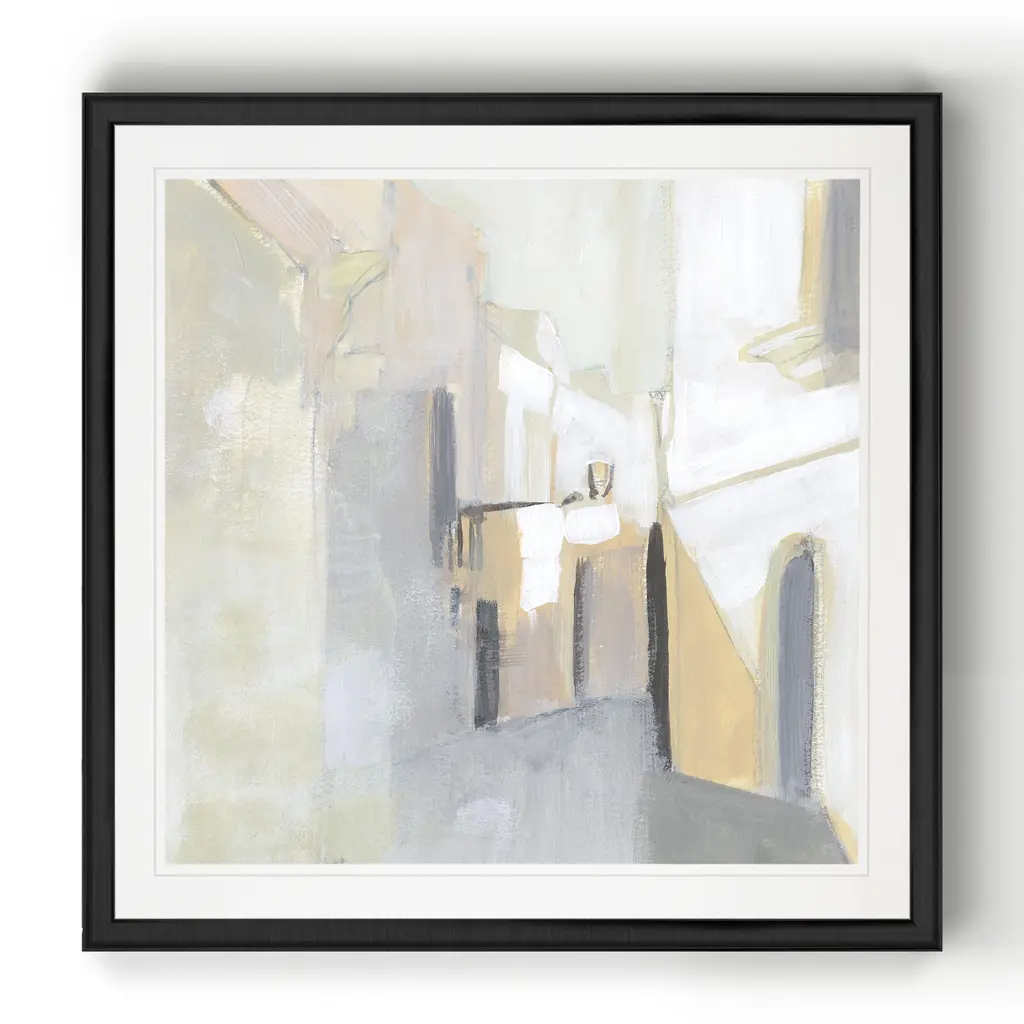 Pausa II -Black Framed Print A premium Black Framed giclee print Featuring a beveled a matt , acrylic glass, and a high quality giclee print 5 SIZES AVAILABLE 34''x34''- Overall Size 30''x30'' - Overall Size 26''x26''' - Overall Size 22''x22''' - Overall Size 18''x18''' - Overall Size Each piece is made to order. Built to Last Each piece comes ready to hang Fade and Water resistant Made domestically