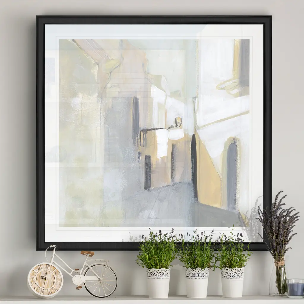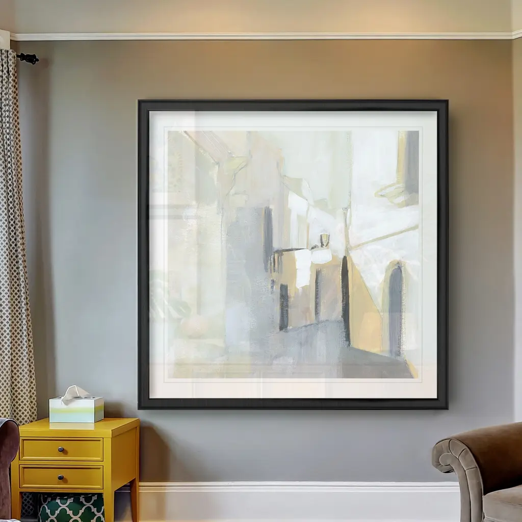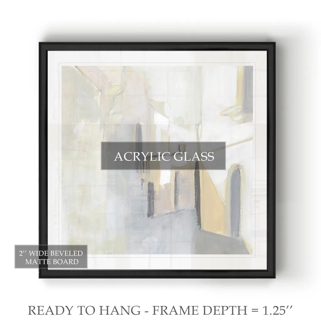 Pausa II -Black Framed Print A premium Black Framed giclee print Featuring a beveled a matt , acrylic glass, and a high quality giclee print 5 SIZES AVAILABLE 34''x34''- Overall Size 30''x30'' - Overall Size 26''x26''' - Overall Size 22''x22''' - Overall Size 18''x18''' - Overall Size Each piece is made to order. Built to Last Each piece comes ready to hang Fade and Water resistant Made domestically