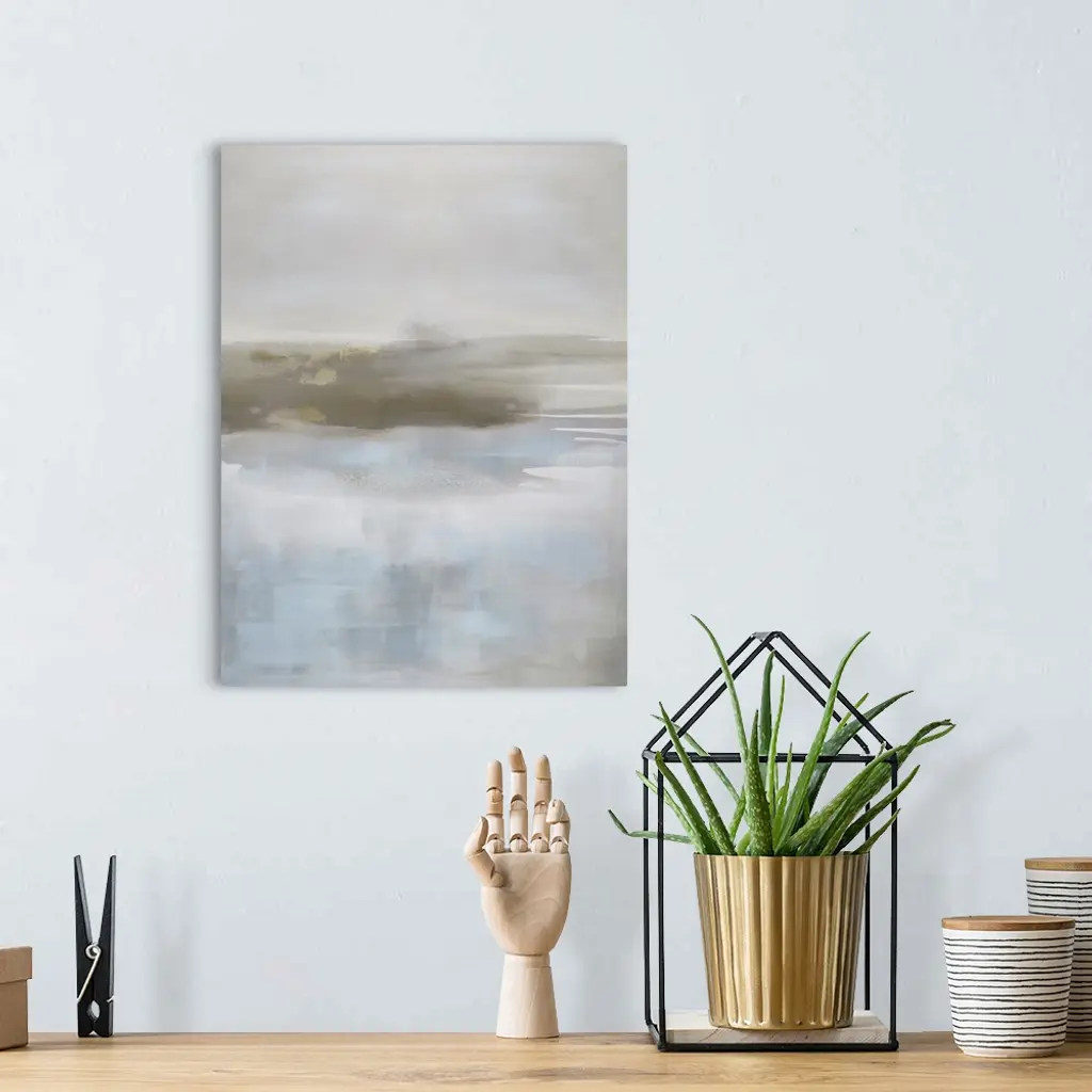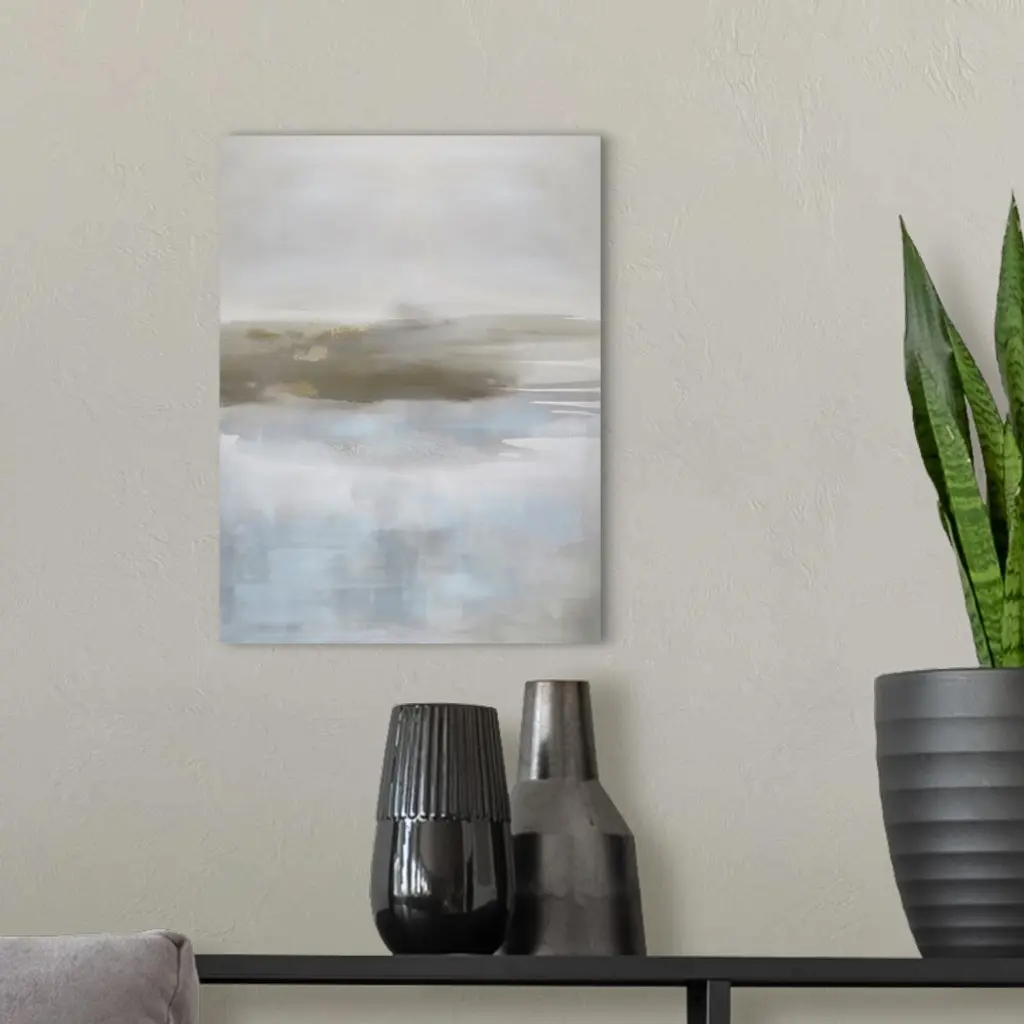 Abstract artwork of pools of muted brown and blue colors permeating over a distressed gray background.