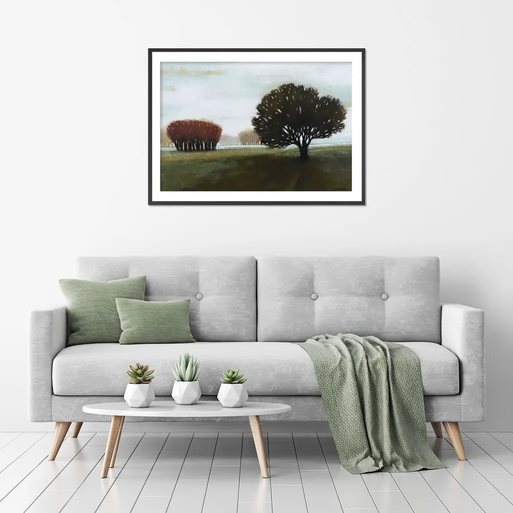 Tranquility and calmness rise over this horizontal landscape featuring various trees and nature. The decorative Norman Wyatt artwork, 'Peace II' will complement your space with its transitional and contemporary aesthetic. This piece is handcrafted in Chattanooga, Tennessee by Ready2HangArt using a locally sourced artist print, with a frame and a rear hanger for simple installation. Offering a wide range of transitional subjects and unique textures, Norman Wyatt's collections will add interest to any modern or contemporary decor.