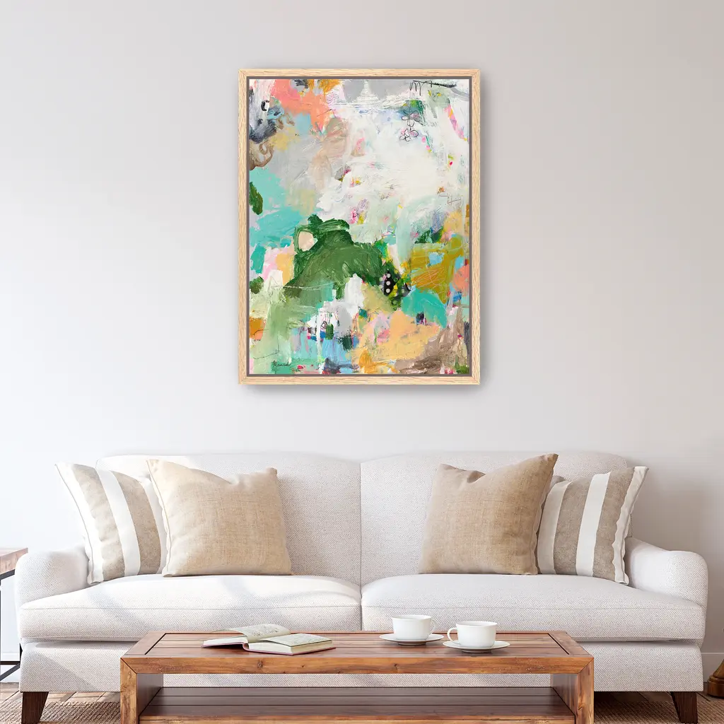 Enhance your living space with this captivating "Peace Of Mind" canvas art by Marisol Evora. Featuring a rich palette of green tones and diverse elements, this artwork adds depth and intrigue to any room. The dynamic composition and vibrant hues create a striking visual experience, making it a perfect statement piece for both contemporary and classic interiors. Available in black frame, dark walnut frame, oak frame, or as a wrapped canvas. Our Gallery Wrap Canvas Prints are proudly assembled with high quality materials in California, USA. Each piece is printed on a thick, archival grade canvas using Giclee technology. It is then hand-stretched by our experienced artisans over solid wood bars, which will not warp over time. The final product is a piece personally crafted for you to confidently display on your wall. Care and Assembly: Ensure that the location of your piece has little to no exposure to heat, sunlight, and moisture. Wipe clean, only if needed. Each piece includes a sawtooth hanger to hang on your wall vertically.