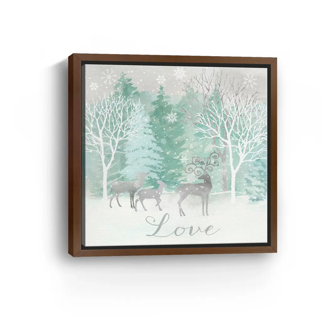 Add a touch of woodland wonder to your home with this winter-themed canvas artwork showcasing a deer among snow-covered trees. The soft pastel tones and elegant "Love" script create a peaceful focal point for seasonal decorating. Our Gallery Wrap Canvas Prints are proudly assembled with high quality materials in California, USA. Each piece is printed on a thick, archival grade canvas using Giclee technology. It is then hand-stretched by our experienced artisans over solid wood bars, which will not warp over time. The final product is a piece personally crafted for you to confidently display on your wall. Care and Assembly: Ensure that the location of your piece has little to no exposure to heat, sunlight, and moisture. Wipe clean, only if needed. Each piece includes hanging hardware to hang on your wall horizontally.