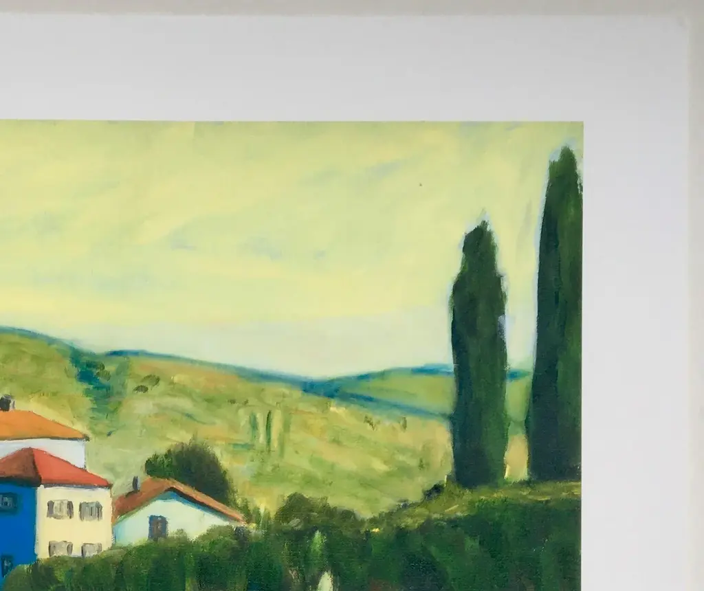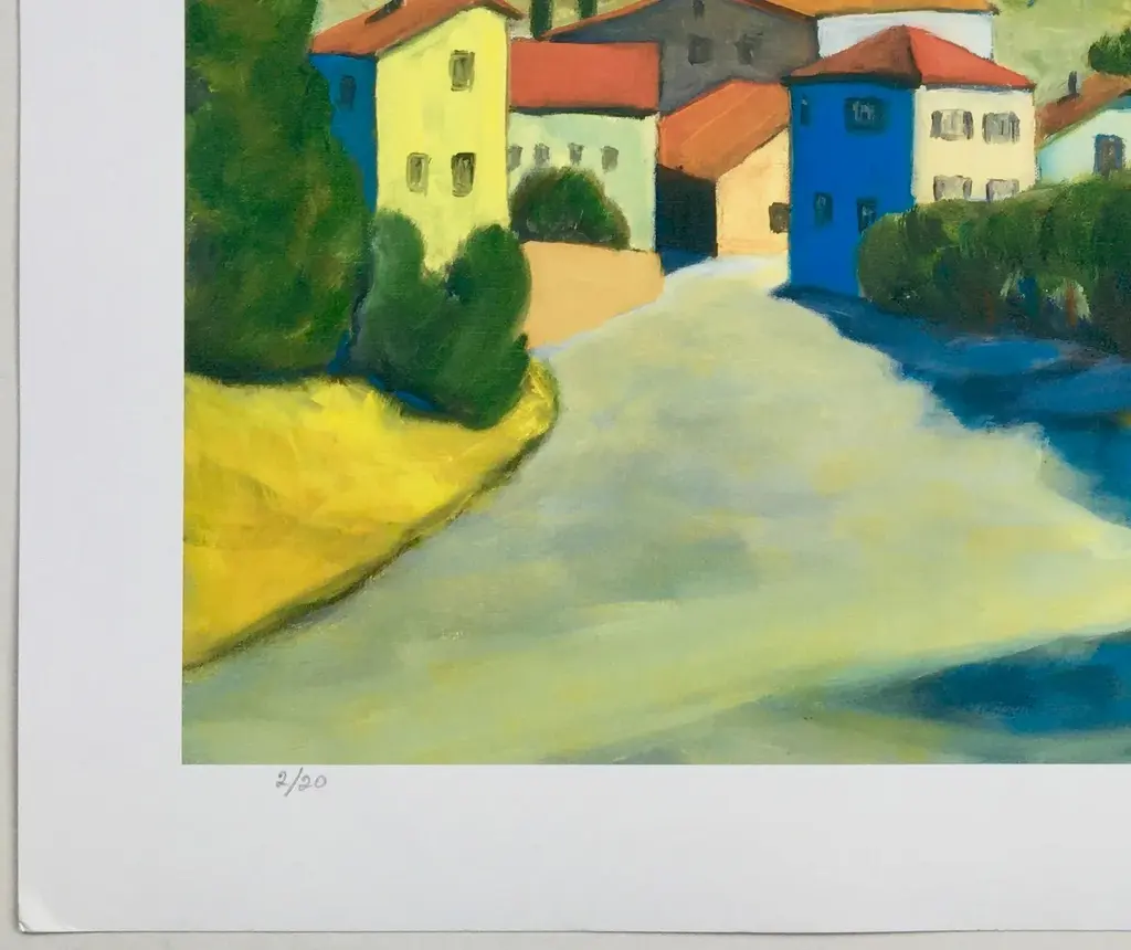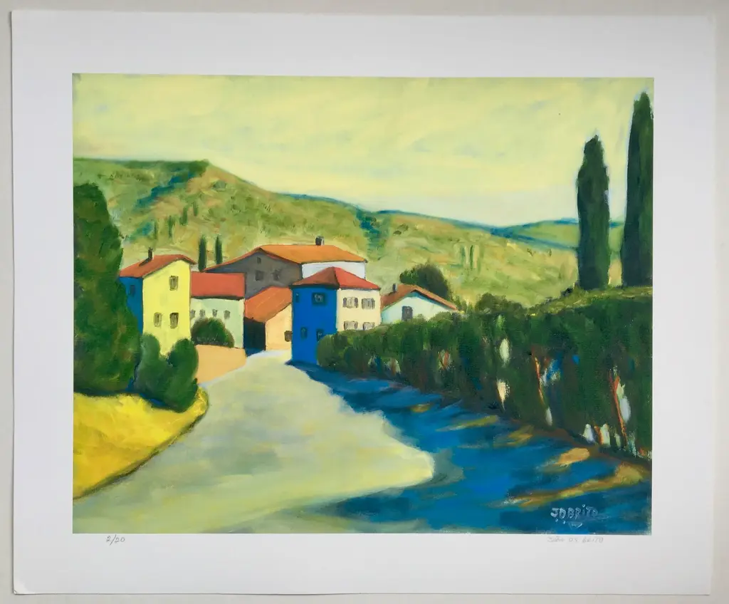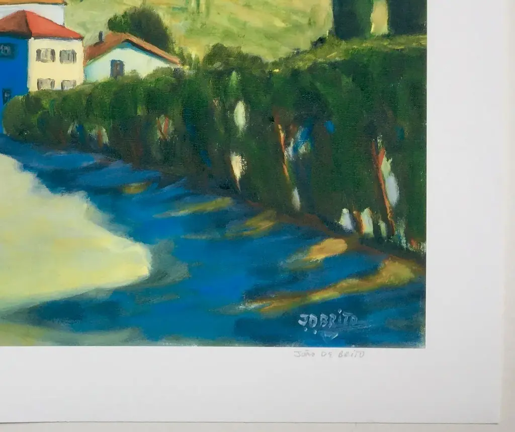 This is a beautiful giclee print of a landscape oil painting by internationally exhibited and collected Portuguese-American artist Joao de Brito. Signed in pencil this is #11 of a limited edition of 20 prints. His en plain air and portrait works are influenced by French fauvists and California impressionists. He is known for his use of vibrant colors with multiple layers of oil on canvas that elicit light, life, and lively energy.