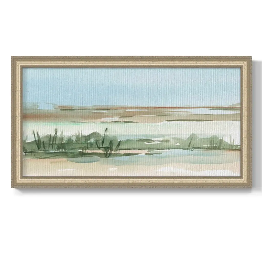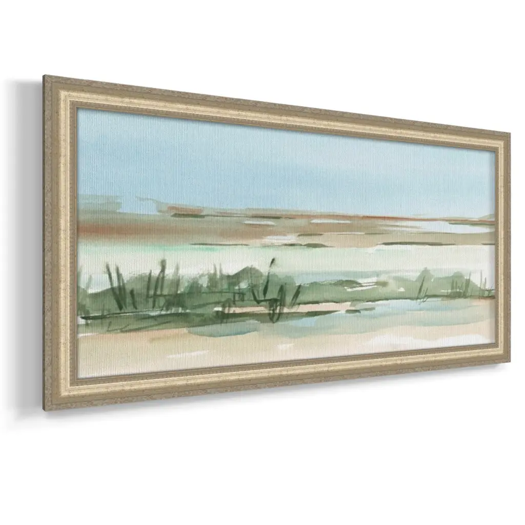 Peaceful Lowland I Premium Framed Canvas- Ready to Hang A Premium Framed Canvas created to last. Framed in distressed wood and available in an array of sizes and colors Featuring a beveled a solid wood stretcher bar, each piece comes ready to hand 3 SIZES AVAILABLE 21''X37'' - Overall Size 25''X45'' - Overall Size 29''x53'' - Overall Size Each piece is made to order. Each piece comes with hanging hardware. Made in the USA Ready to Hang Giclee Paper Print Acrylic Glass Beveled Matt Board
