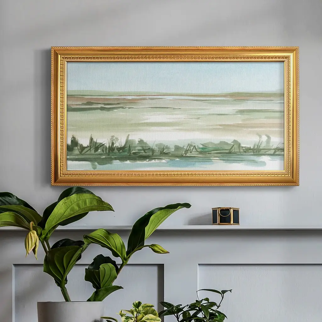 Peaceful Lowland Ii Premium Framed Canvas- Ready To Hang - 18x34 - Maple