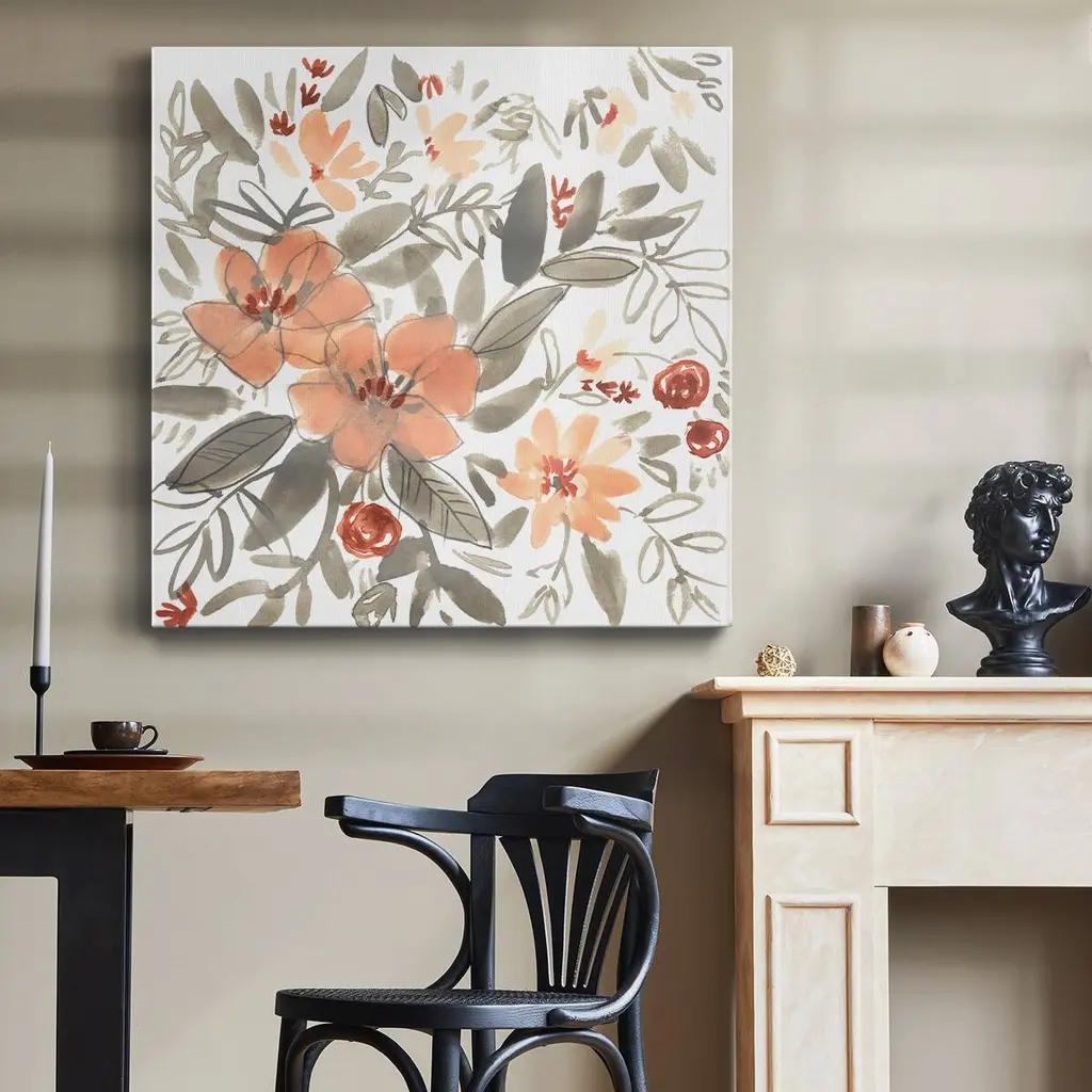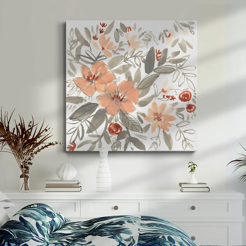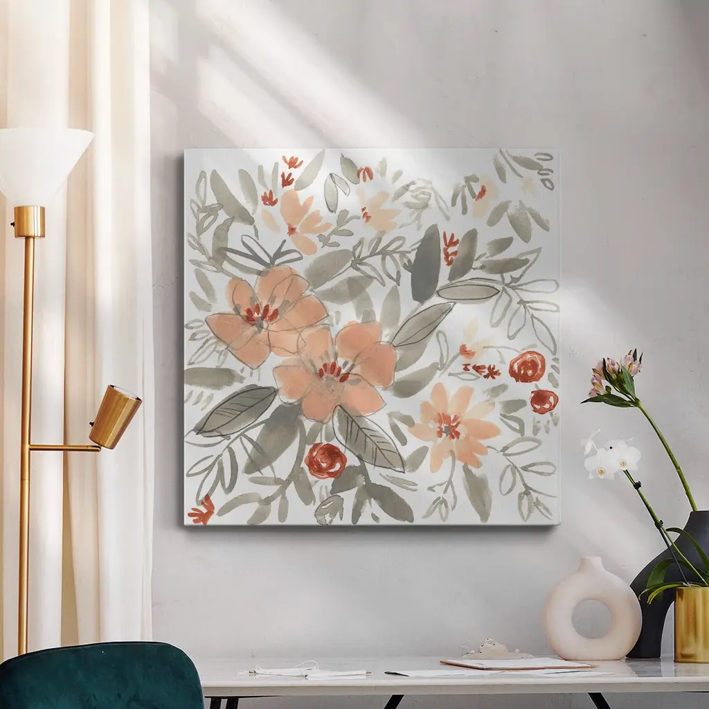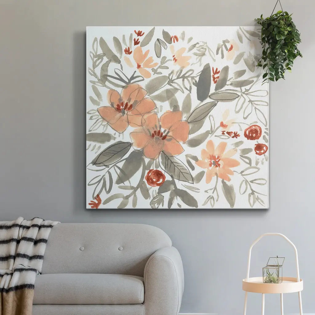 Peach & Rust Blooms I-Premium Gallery Wrapped Canvas - Ready To Hang - 24x24
