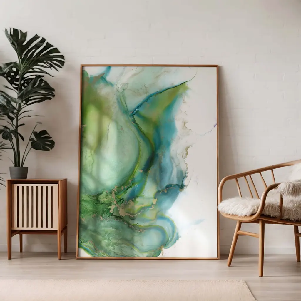 A bold blend of deep forest green, sky blue, and shimmering gold. Inspired by the elegance and confidence of the peacock, this piece reminds you to embrace your radiance and take up space.* Perfect for – Statement walls, dressing rooms, or creative spaces.* A meaningful gift – A beautiful piece for anyone needing a reminder of their inner power.