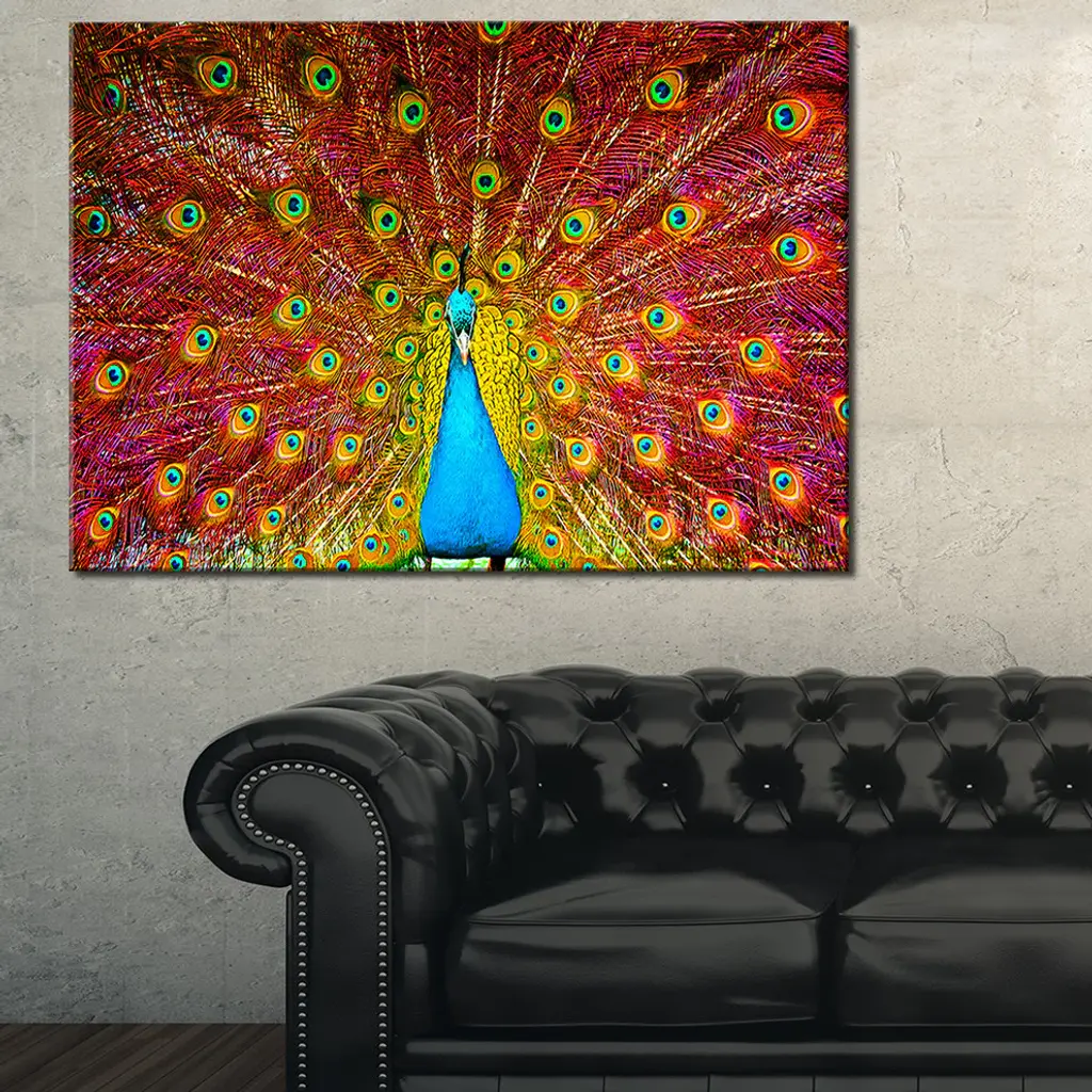 The Peacock Dancing canvas art print is sure to make an impression on anyone who sees it. This artwork is gallery wrapped around a 1-inch solid wood frame and arrives carefully packaged and entirely ready to hang on the wall. Design Art only uses the highest resolution and pigments to ensure a crisp colorful print that is never faded or pixelated. This artwork is sure to be a conversation starter in any home or office.