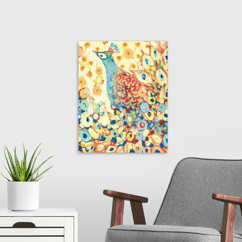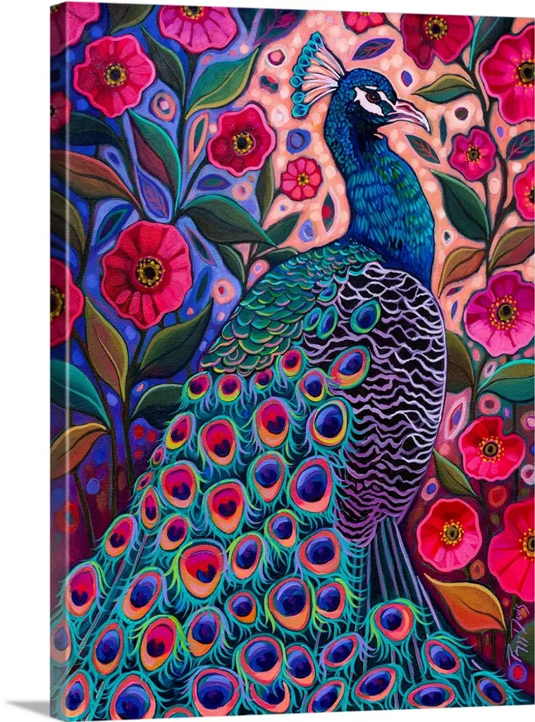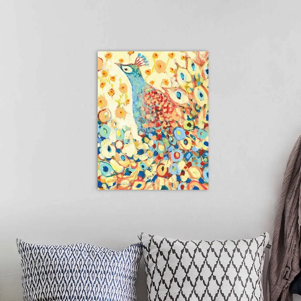 This stylized painting of a decorative bird is a wonderful decorative accent for a living room or bedroom.