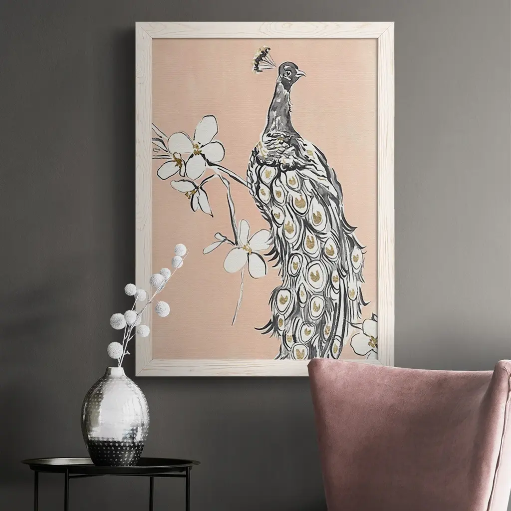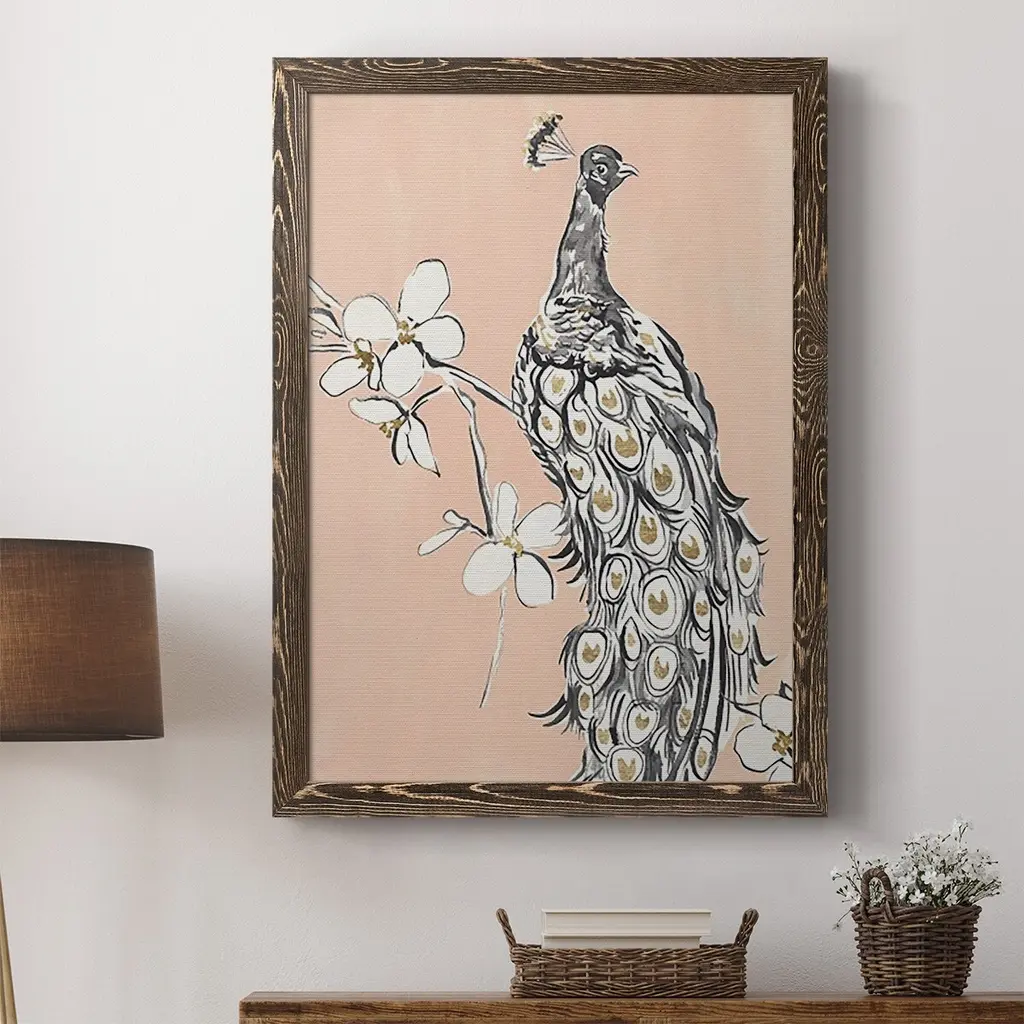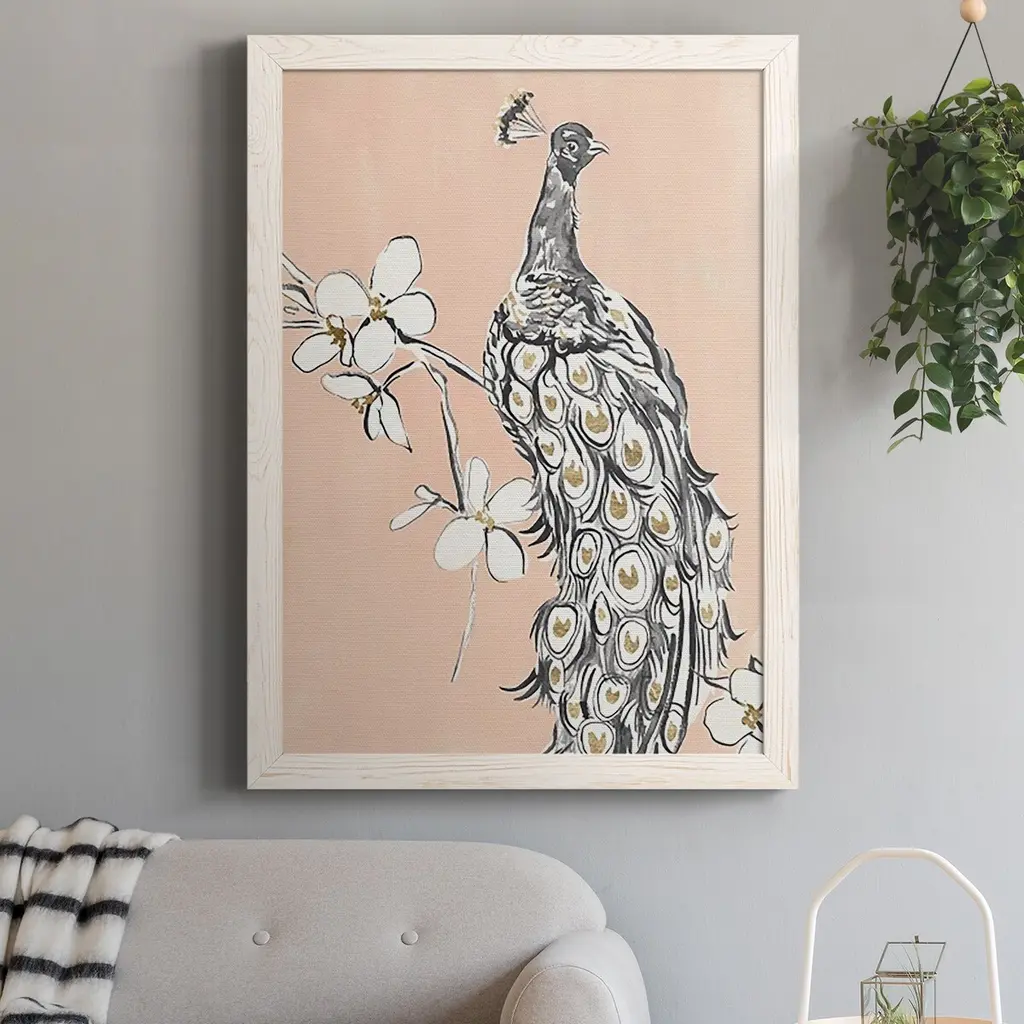 Peacock In Gold I-Premium Framed Canvas - Ready To Hang - 27.5x37.5 - Black