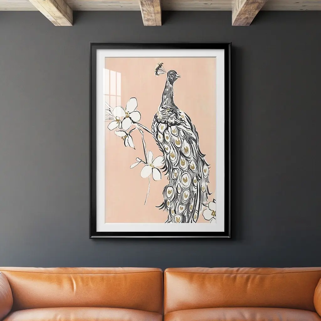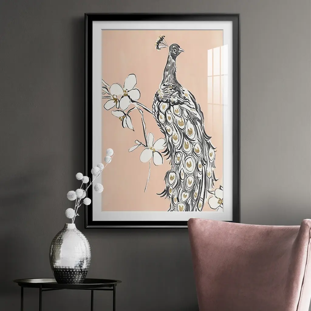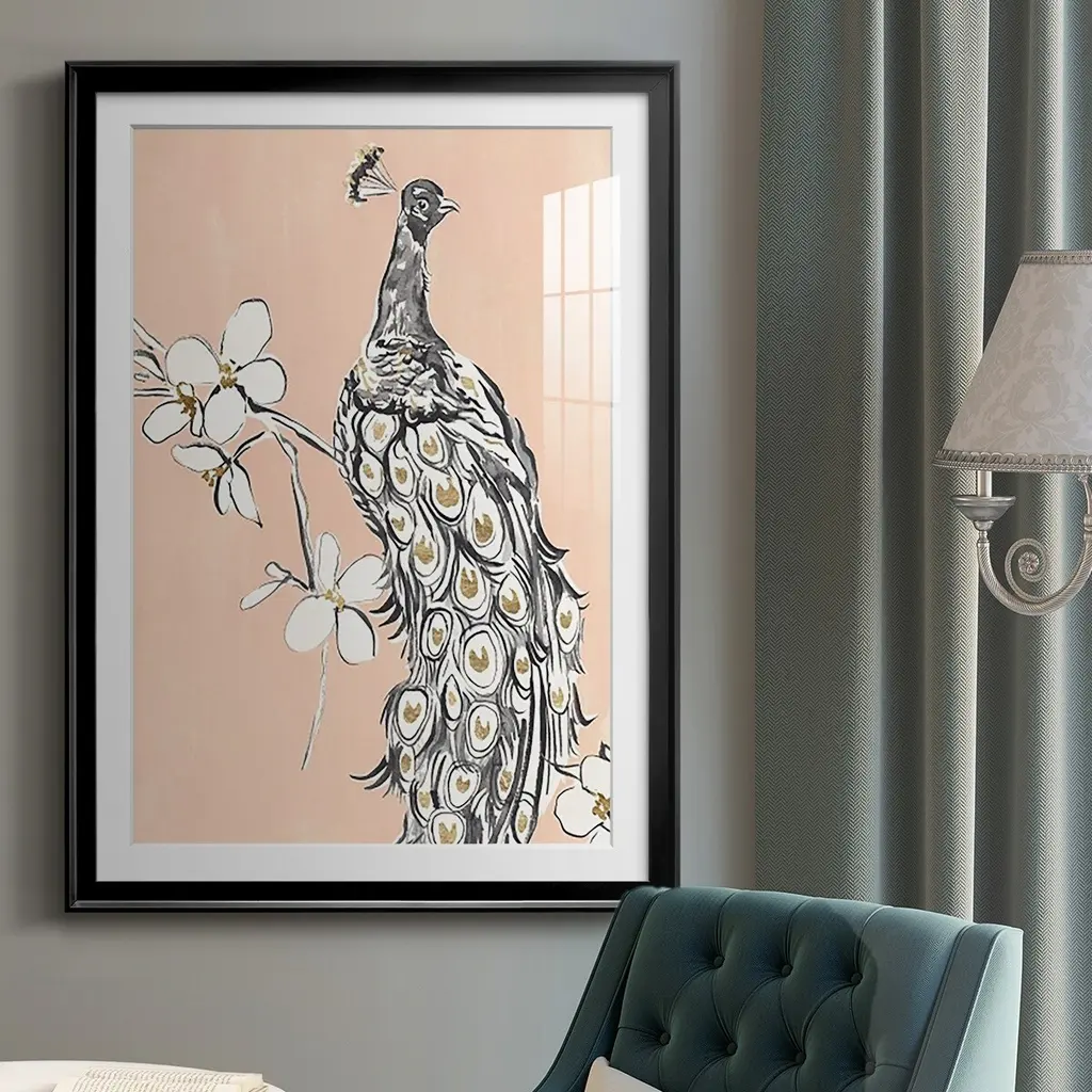 Peacock In Gold I Premium Framed Print - Ready To Hang - 22.5x30.5 - Black