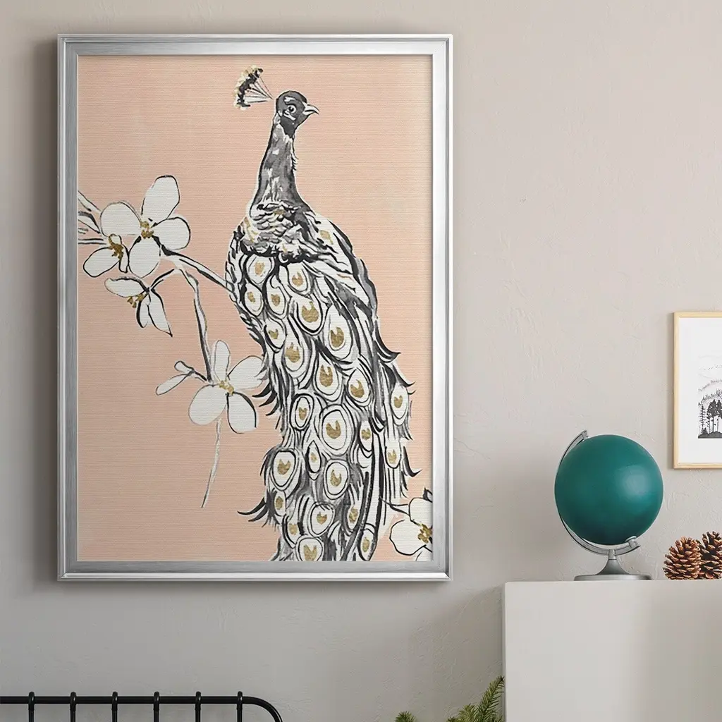 Peacock In Gold I Premium Framed Print - Ready To Hang - 26.5x36.5 - Silver