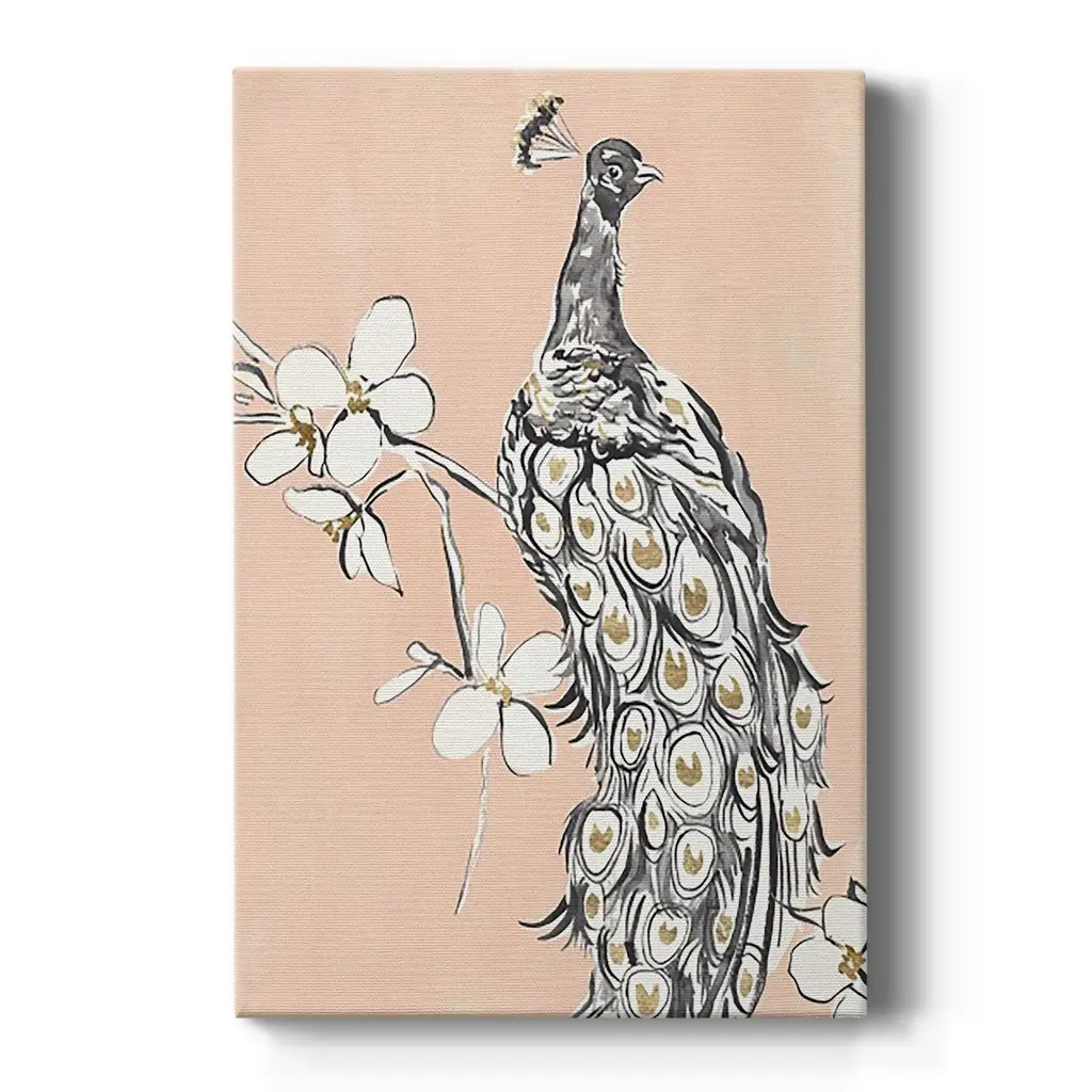 Peacock in Gold I Premium Gallery Wrapped Canvas - Ready to Hang A premium hand stretched gallery wrapped canvas print created to last. Featuring a beveled a solid wood stretcher bar, each piece comes ready to hand 6 SIZES AVAILABLE 8''X12'' - Overall Size 12''X18'' - Overall Size 18''X27'' - Overall Size 24''x36'' - Overall Size 32''x48'' - Overall Size 40''x60'' - Overall Size Each piece is made to order. Built to Last Each piece comes ready to hang Solid wood stretcher Fade and Water resistant Made domestically