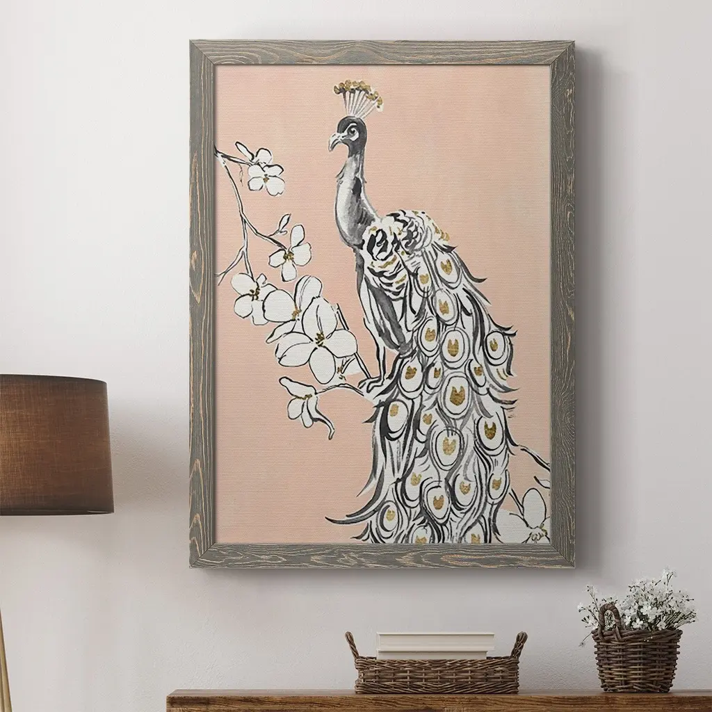 Peacock In Gold Ii-Premium Framed Canvas - Ready To Hang - 31.5x43.5 - Grey