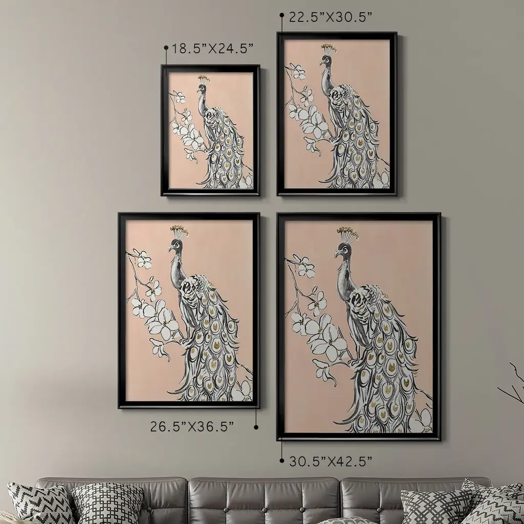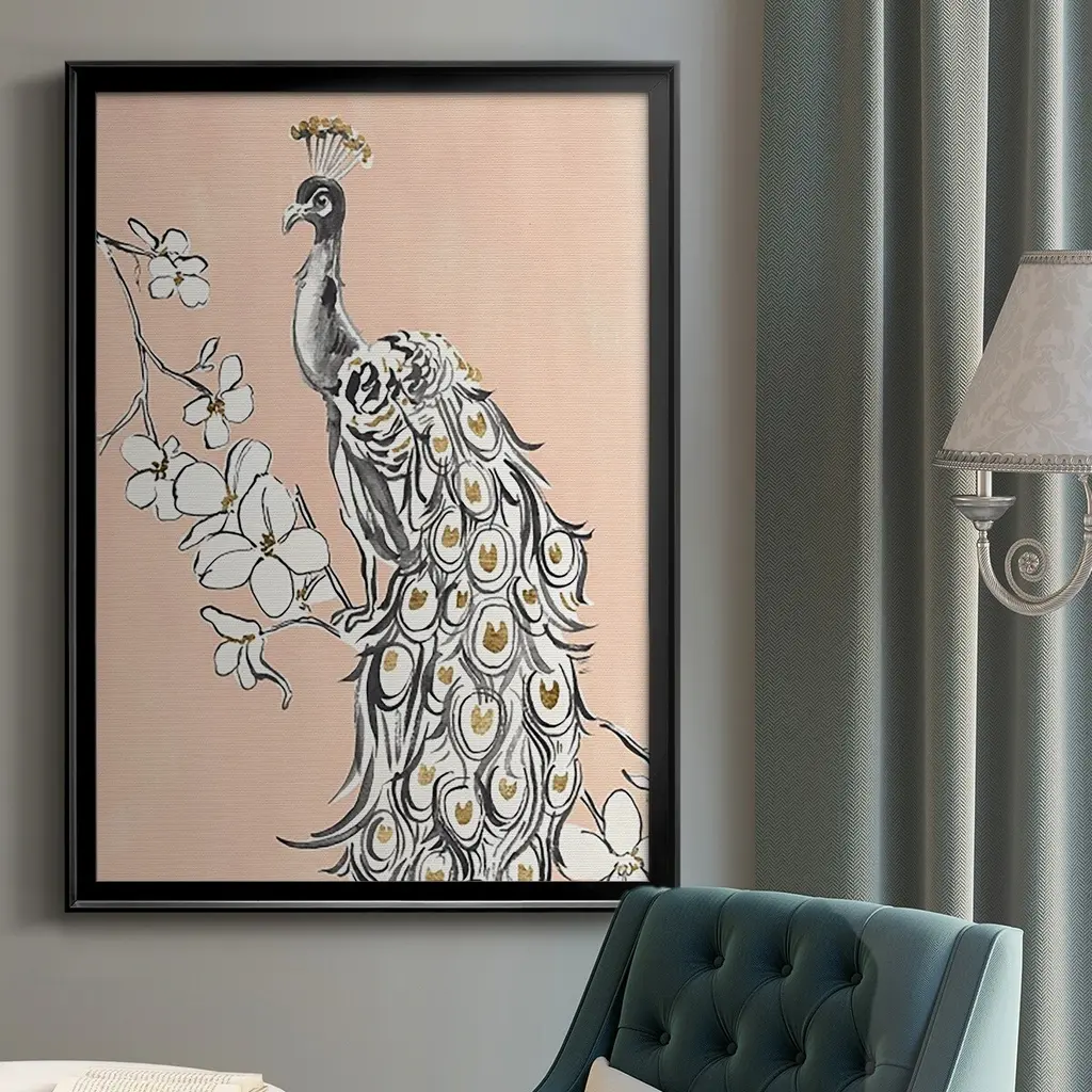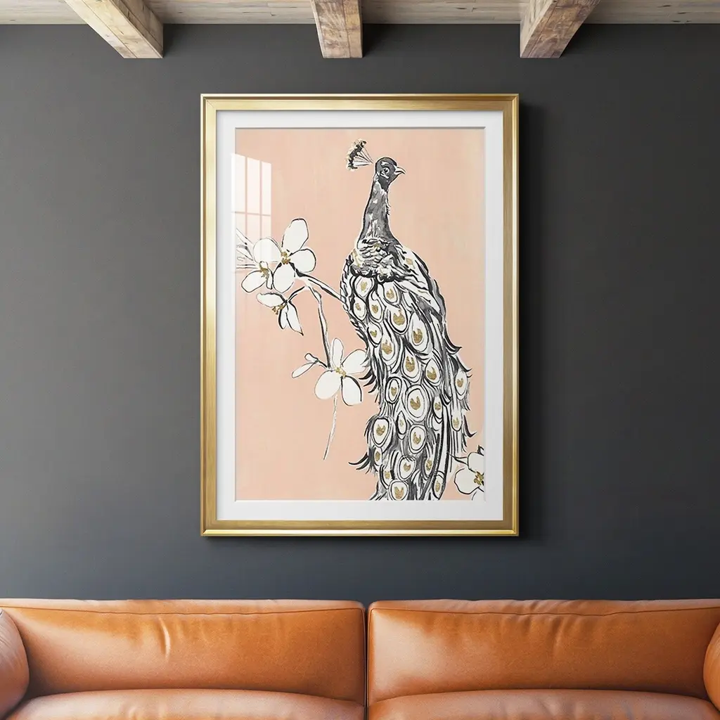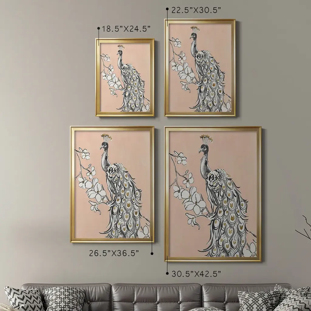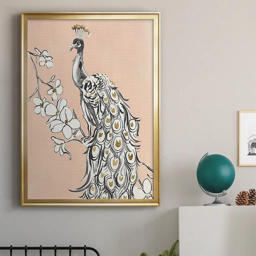 Peacock in Gold II Premium Framed Print - Ready to Hang A Premium Framed Print created to last. Framed in distressed wood and available in an array of sizes and colors Featuring a beveled a solid wood stretcher bar, each piece comes ready to hand 4 SIZES AVAILABLE 30.5''X42.5'' - Overall Size 26.5'X36.5'' - Overall Size 22.5''x30.5'' - Overall Size 18.5''x24.5'' - Overall Size Each piece is made to order. Each piece comes with hanging hardware. Made in the USA Ready to Hang