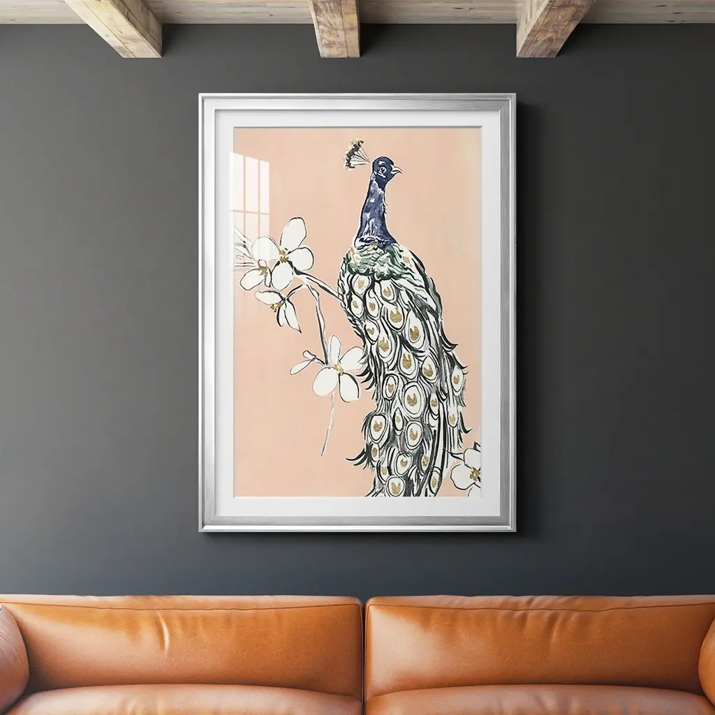 Peacock In Gold Ii Premium Framed Print - Ready To Hang - 26.5x36.5 - Silver