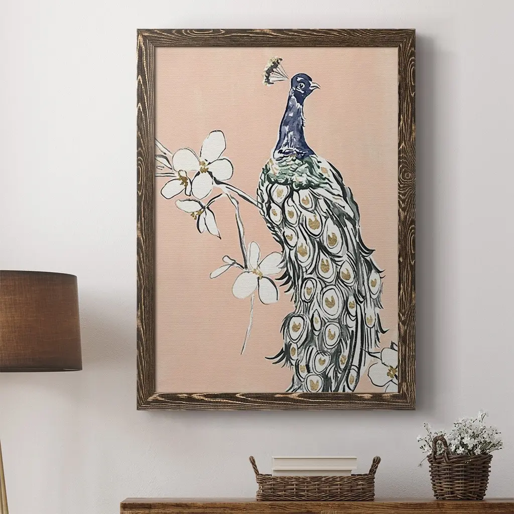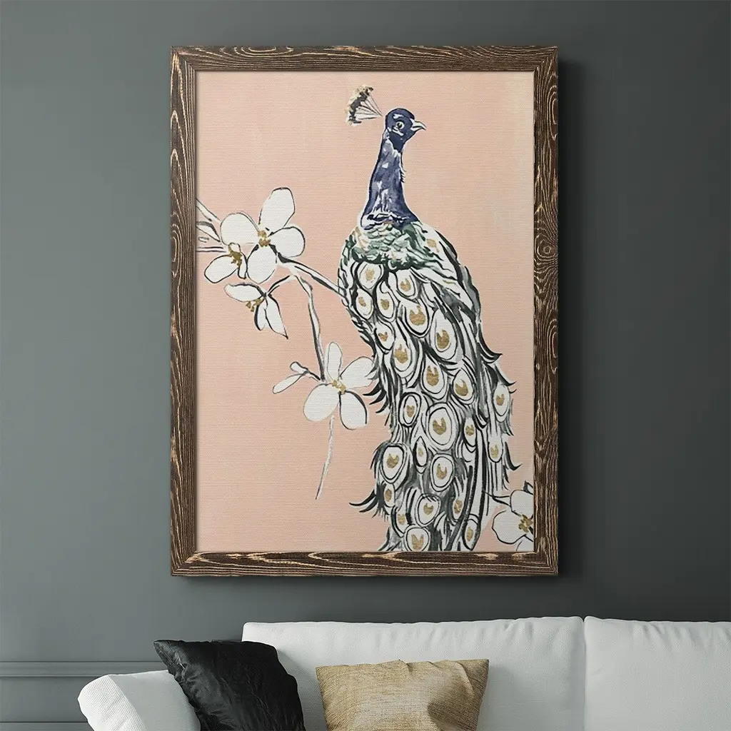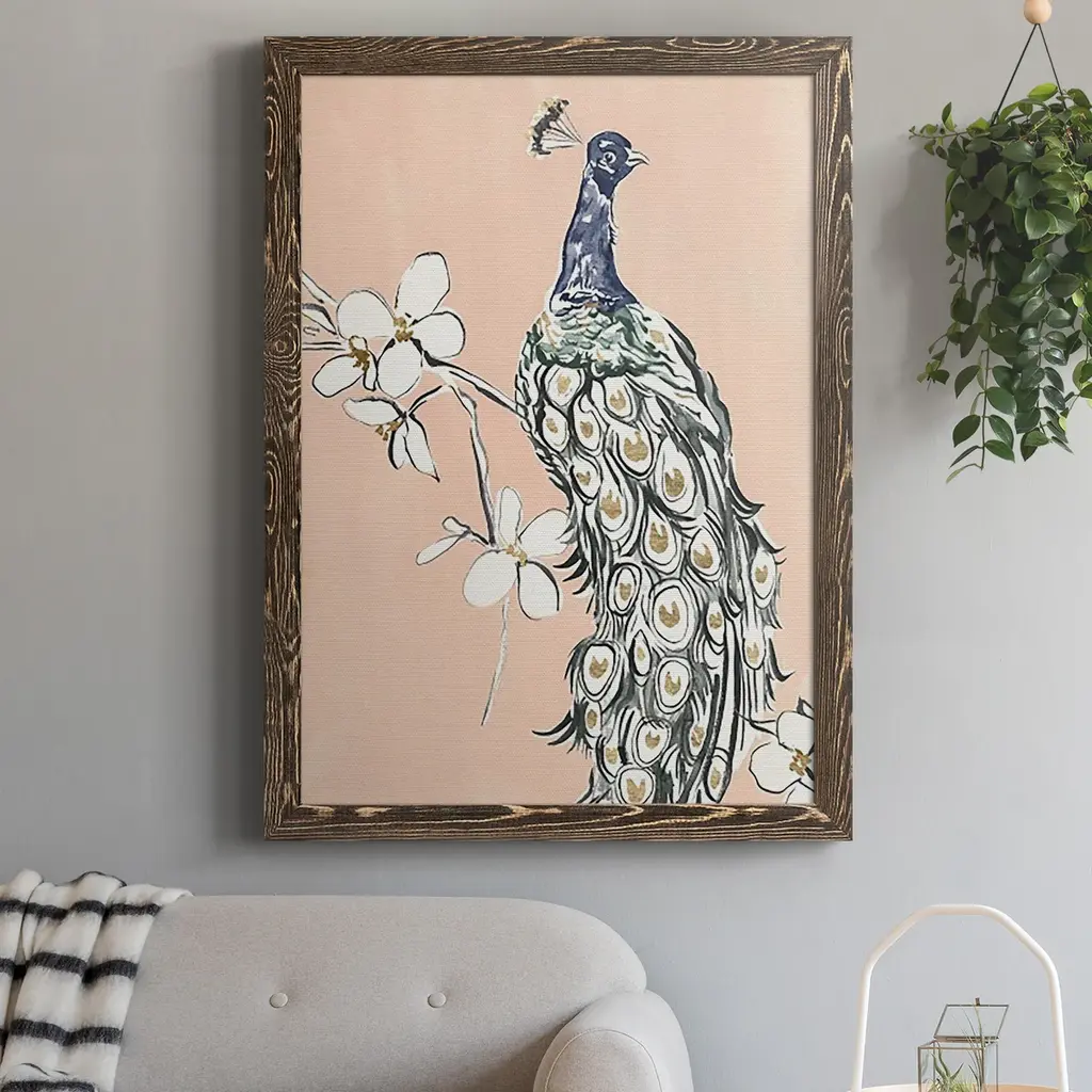 Peacock In Gold Iii-Premium Framed Canvas - Ready To Hang - 27.5x37.5 - Grey