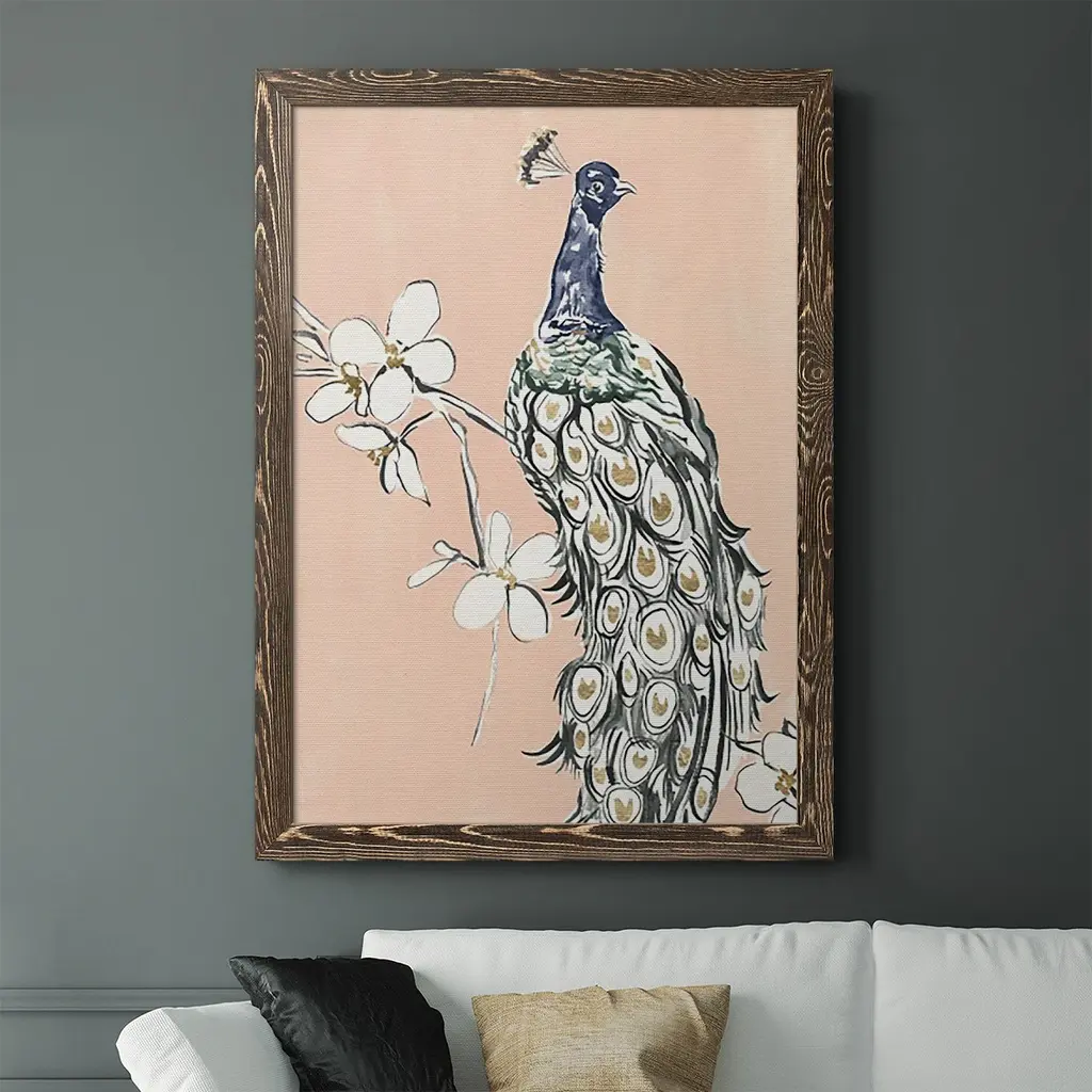 Peacock In Gold Iii-Premium Framed Canvas - Ready To Hang - 27.5x37.5 - White