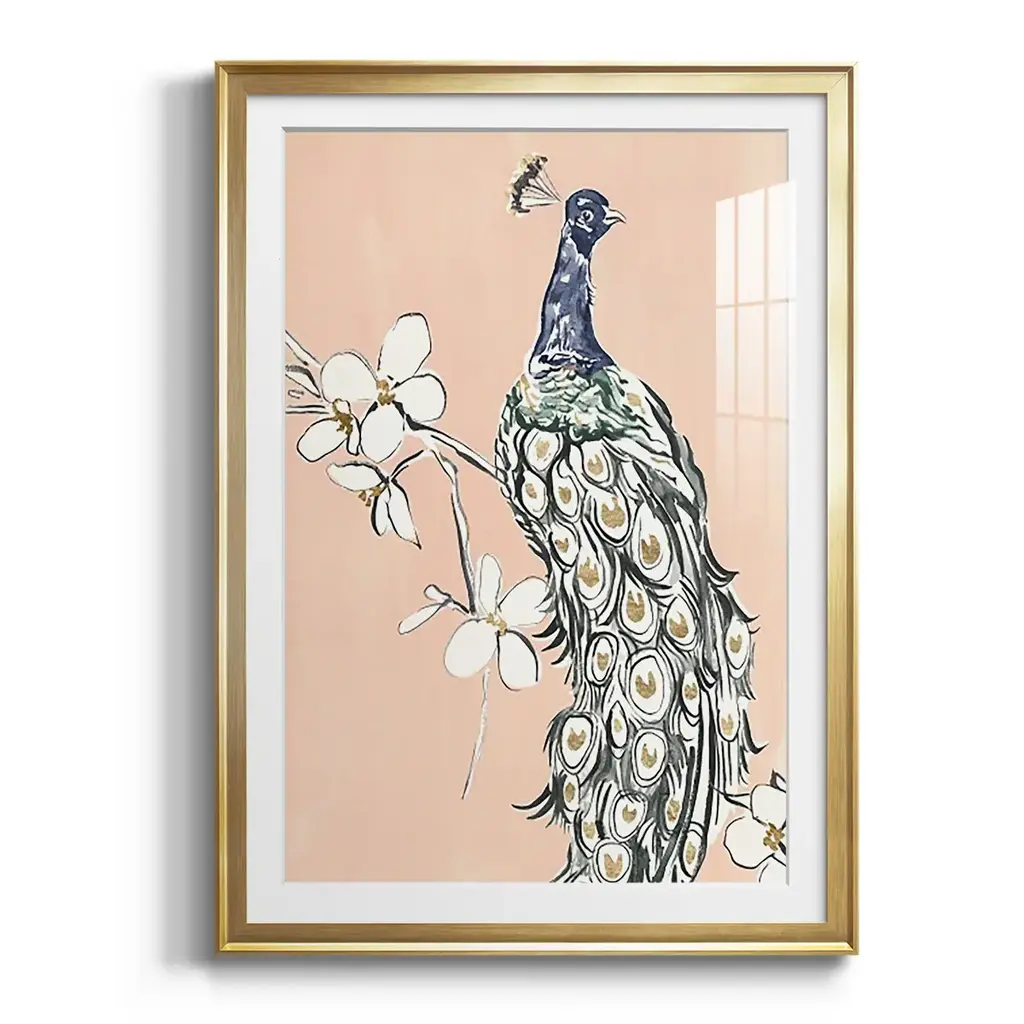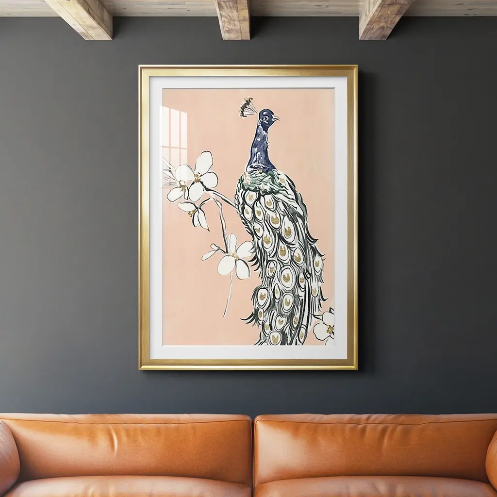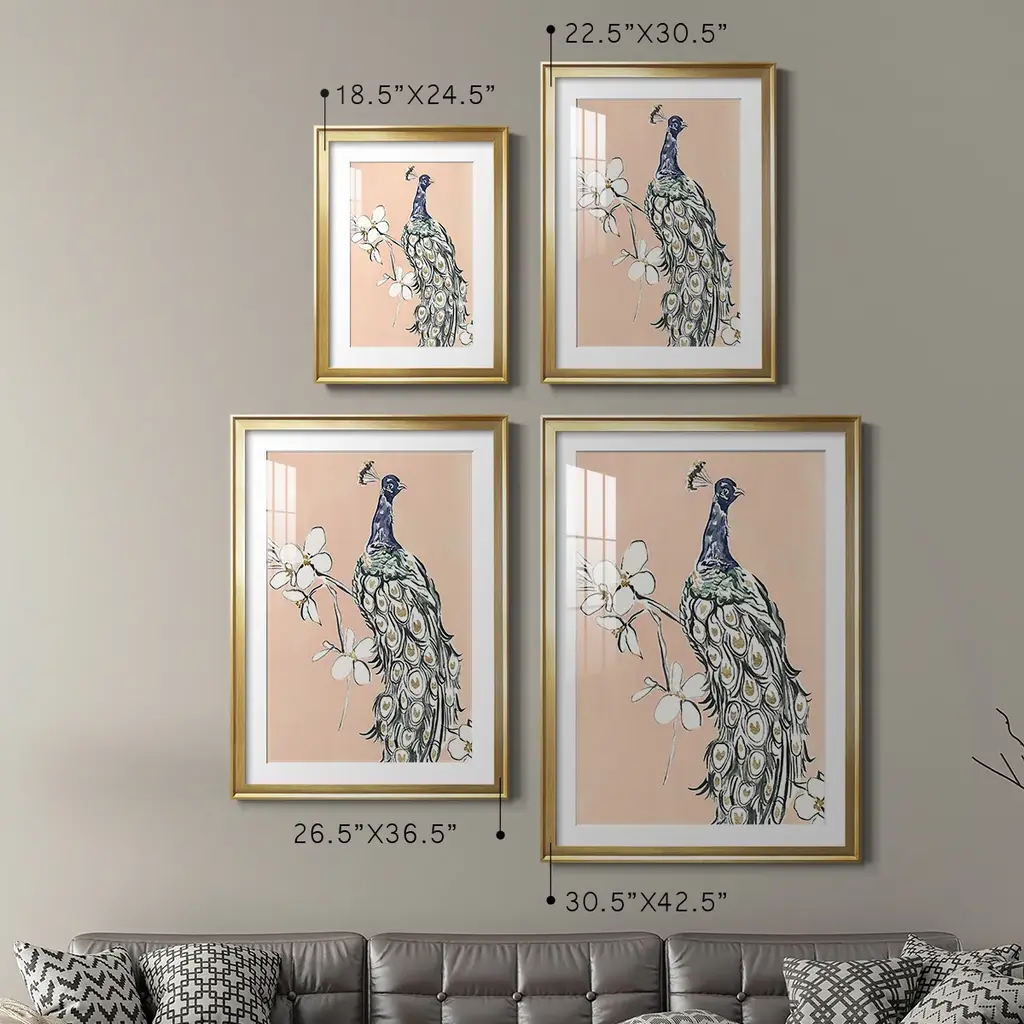 Peacock in Gold III Premium Framed Print - Ready to Hang A Premium Framed Print created to last. Framed in distressed wood and available in an array of sizes and colors Featuring a beveled a solid wood stretcher bar, each piece comes ready to hand 4 SIZES AVAILABLE 30.5''X42.5'' - Overall Size 26.5'X36.5'' - Overall Size 22.5''x30.5'' - Overall Size 18.5''x24.5'' - Overall Size Each piece is made to order. Each piece comes with hanging hardware. Made in the USA Ready to Hang Giclee Paper Print Acrylic Glass Beveled Matt Board