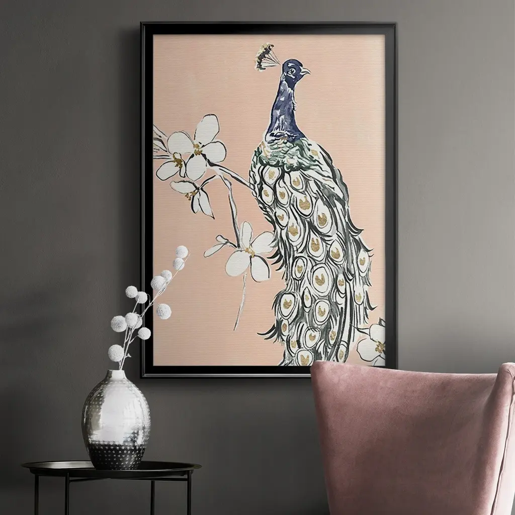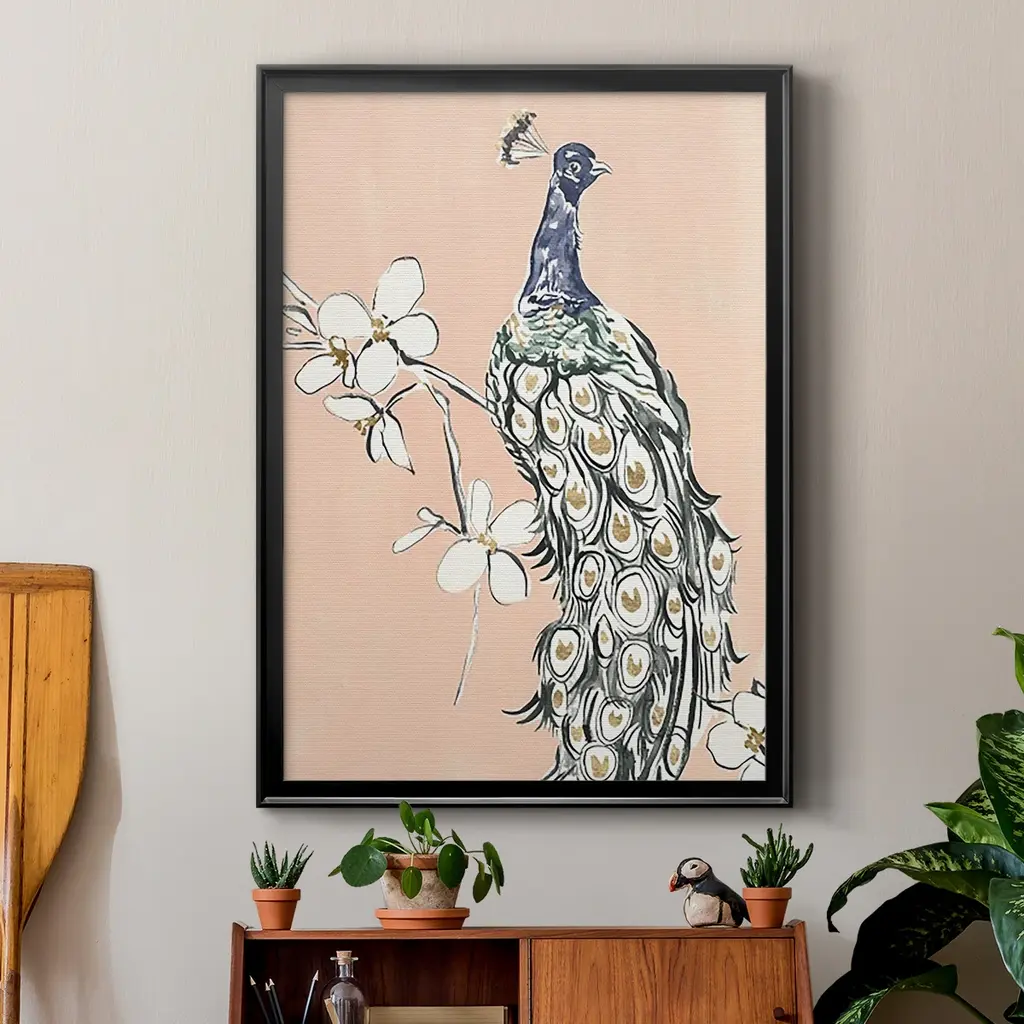 Peacock in Gold III Premium Framed Print - Ready to Hang A Premium Framed Print created to last. Framed in distressed wood and available in an array of sizes and colors Featuring a beveled a solid wood stretcher bar, each piece comes ready to hand 4 SIZES AVAILABLE 30.5''X42.5'' - Overall Size 26.5'X36.5'' - Overall Size 22.5''x30.5'' - Overall Size 18.5''x24.5'' - Overall Size Each piece is made to order. Each piece comes with hanging hardware. Made in the USA Ready to Hang