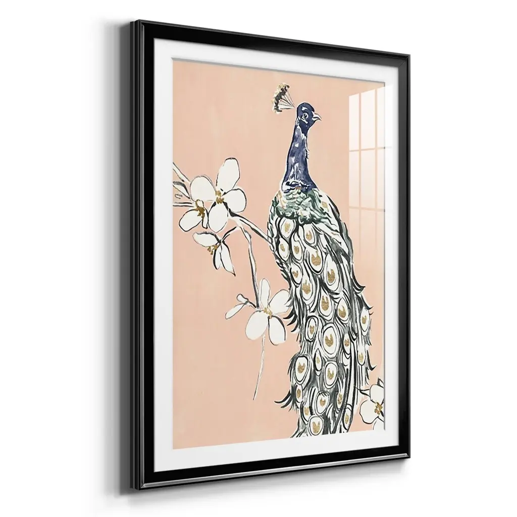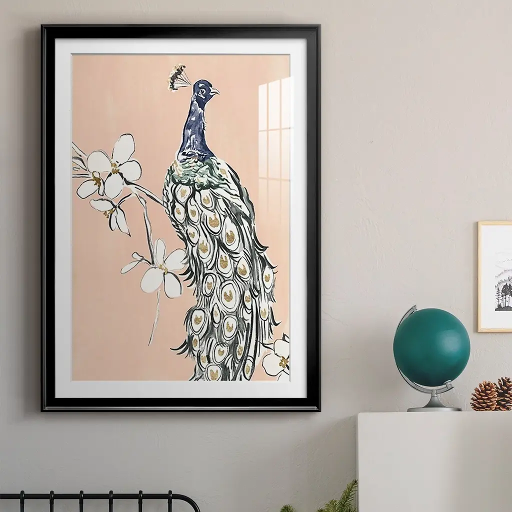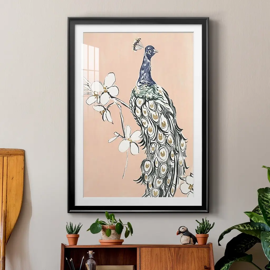 Peacock in Gold III Premium Framed Print - Ready to Hang A Premium Framed Print created to last. Framed in distressed wood and available in an array of sizes and colors Featuring a beveled a solid wood stretcher bar, each piece comes ready to hand 4 SIZES AVAILABLE 30.5''X42.5'' - Overall Size 26.5'X36.5'' - Overall Size 22.5''x30.5'' - Overall Size 18.5''x24.5'' - Overall Size Each piece is made to order. Each piece comes with hanging hardware. Made in the USA Ready to Hang Giclee Paper Print Acrylic Glass Beveled Matt Board