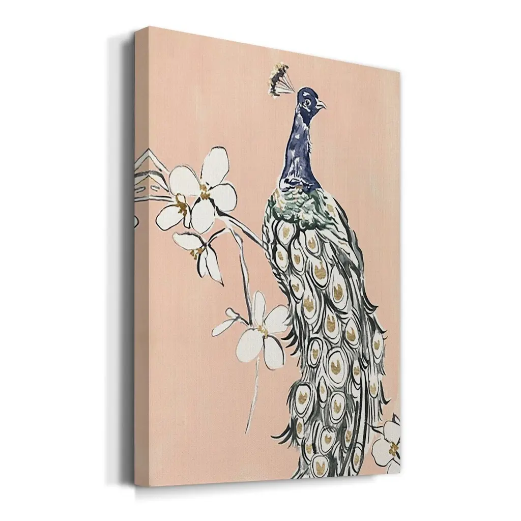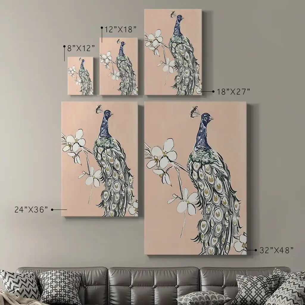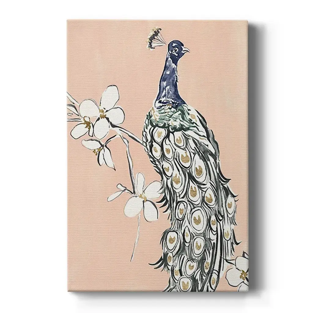 Peacock in Gold III Premium Gallery Wrapped Canvas - Ready to Hang A premium hand stretched gallery wrapped canvas print created to last. Featuring a beveled a solid wood stretcher bar, each piece comes ready to hand 6 SIZES AVAILABLE 8''X12'' - Overall Size 12''X18'' - Overall Size 18''X27'' - Overall Size 24''x36'' - Overall Size 32''x48'' - Overall Size 40''x60'' - Overall Size Each piece is made to order. Built to Last Each piece comes ready to hang Solid wood stretcher Fade and Water resistant Made domestically